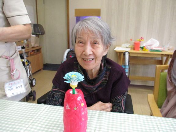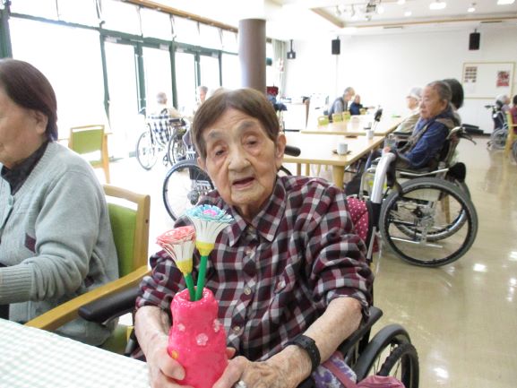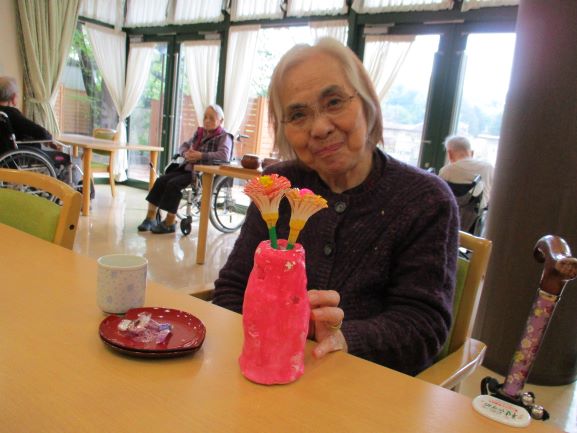 今月は、前回作成した紙粘土の花瓶に飾る「お花」を作りました。