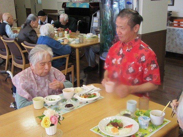 職員もアロハシャツやムームーを着て、おもてなしをいたしました。
