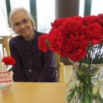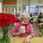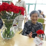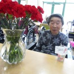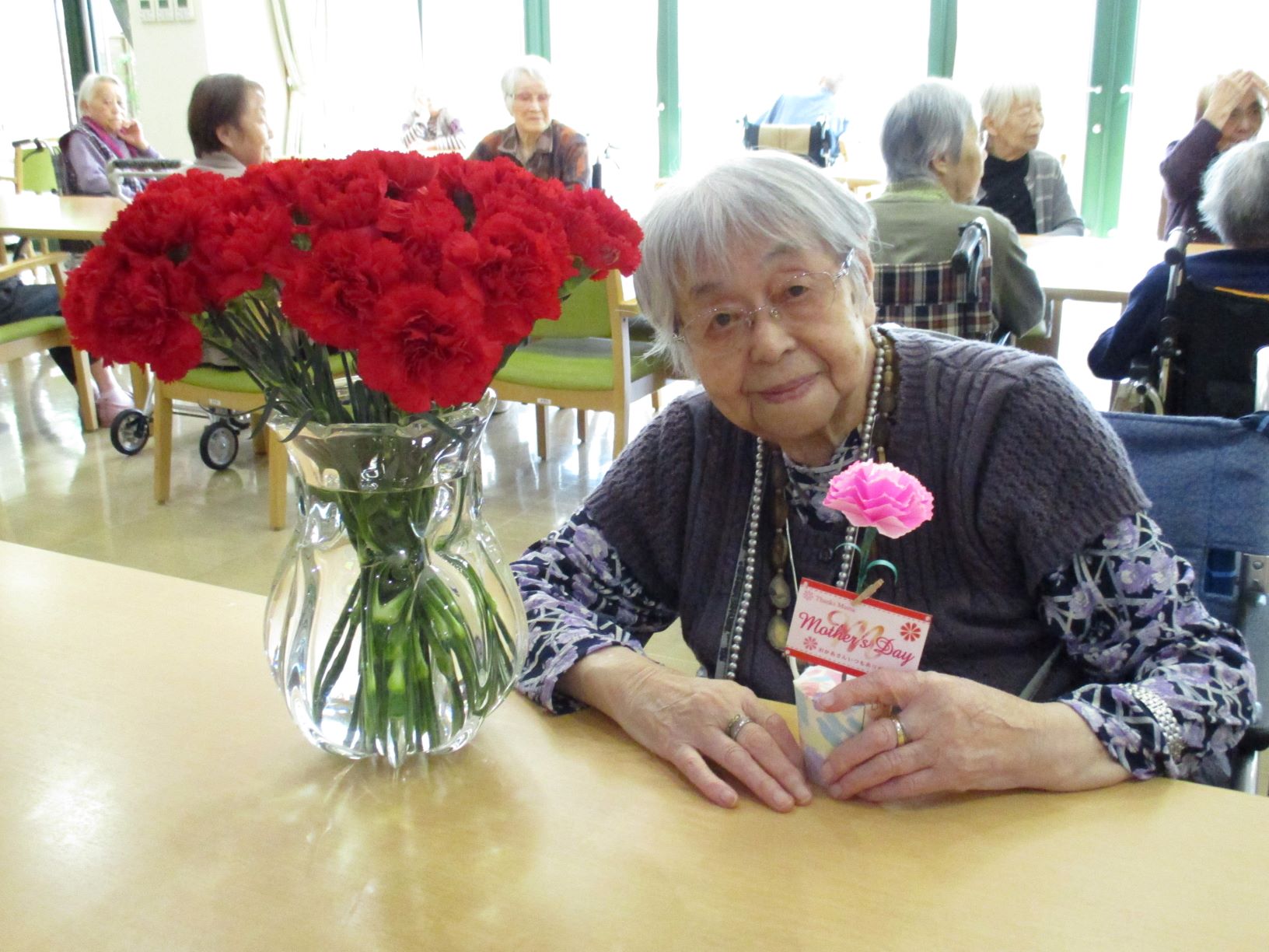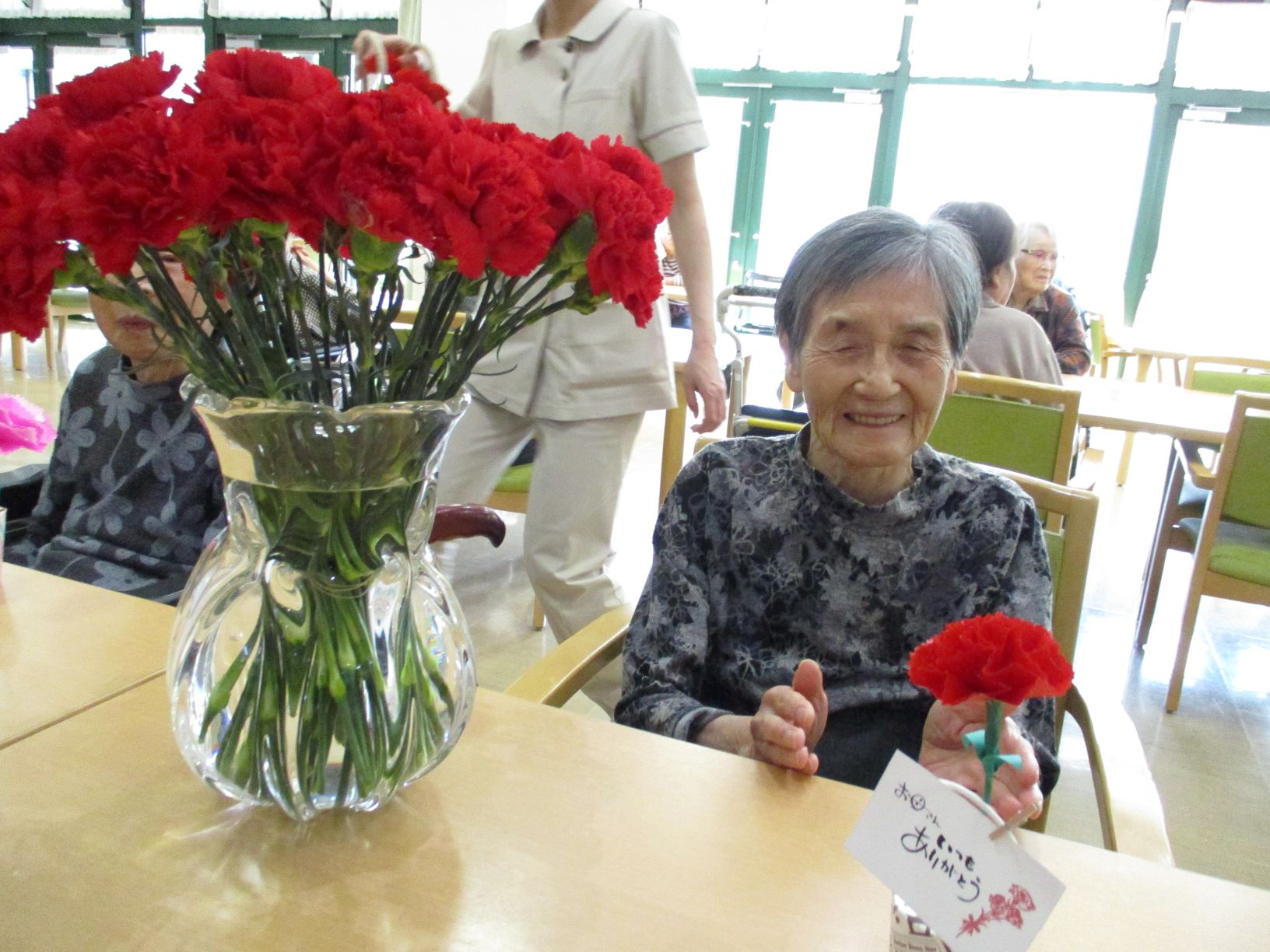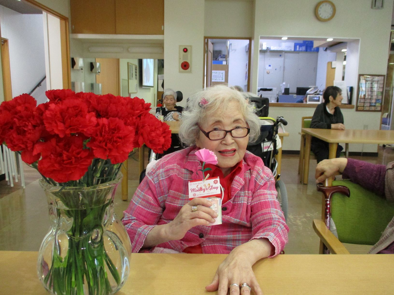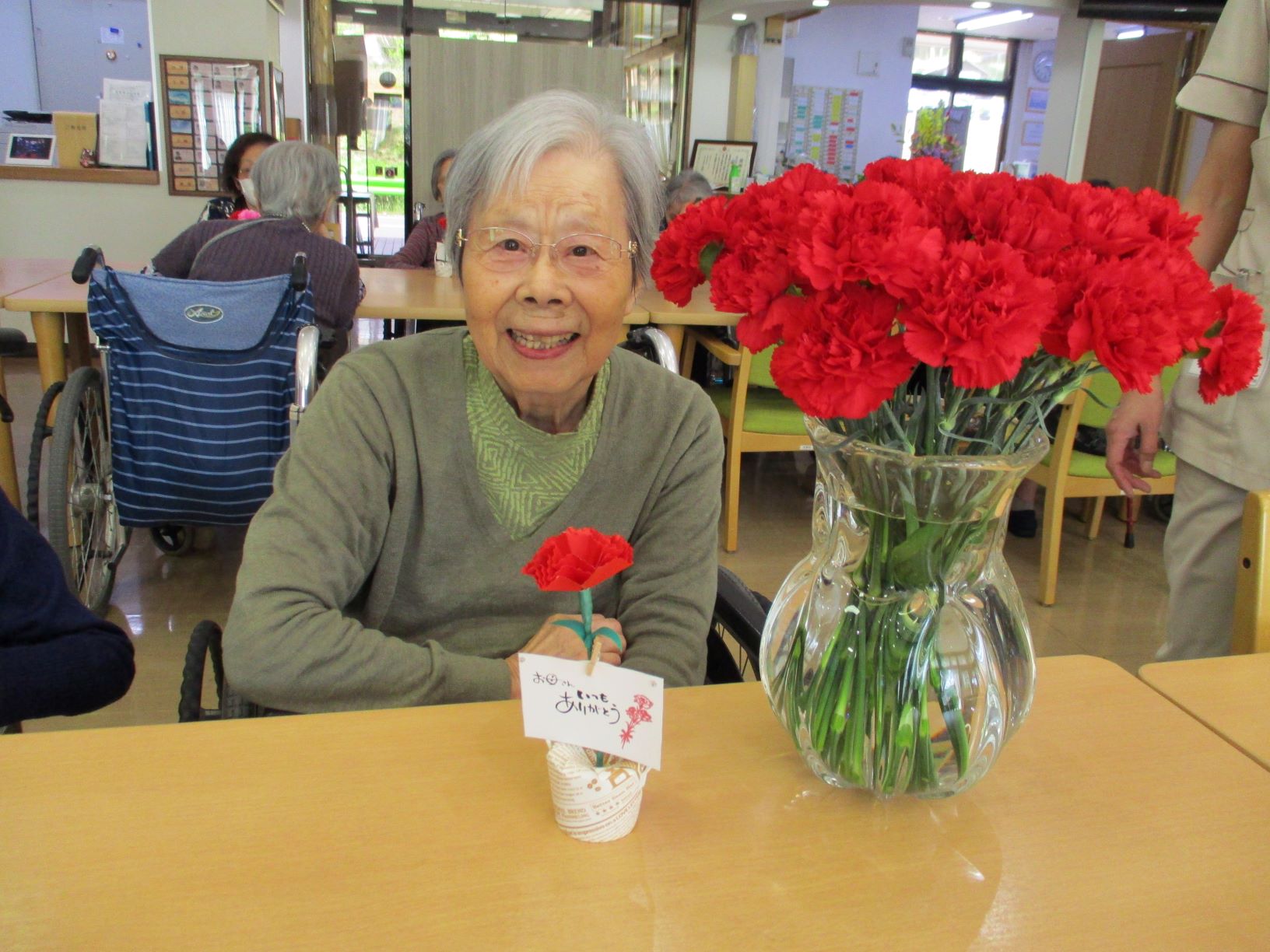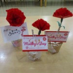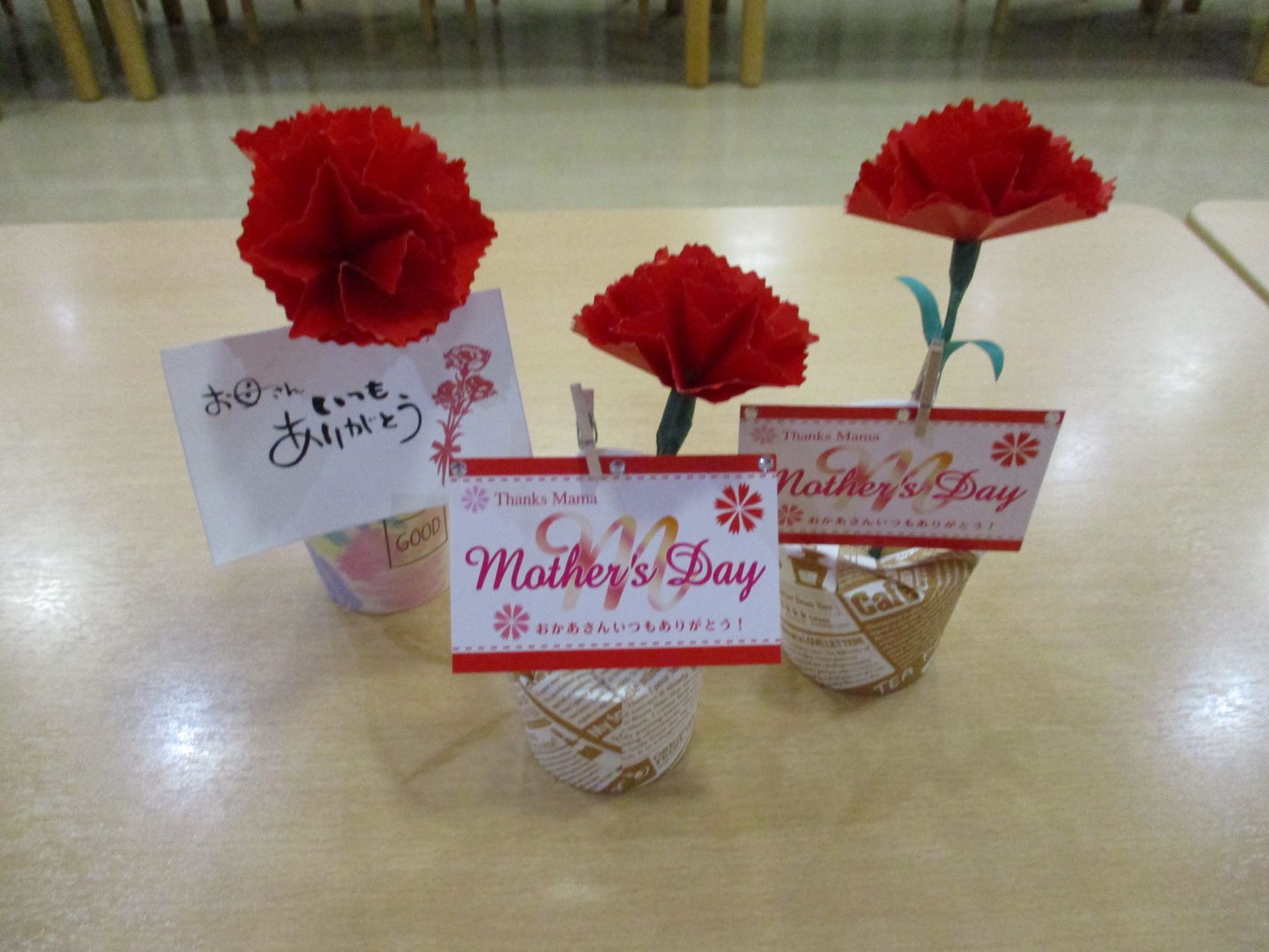 折り紙で作ったカーネーションの飾り物をプレゼント。