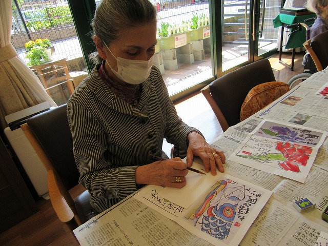 本日は、前回に引き続いて「絵手紙」を作成していただきました。