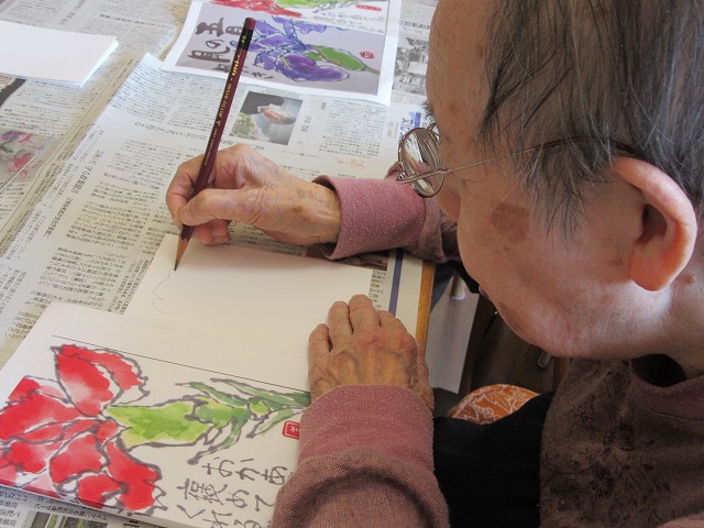 皆様、思い思いに筆をとり、心のこもった絵手紙ができあがりました。