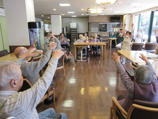 より食べやすくと考えております。さぁ今日もリハビリ体操ですよ!