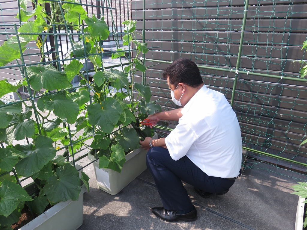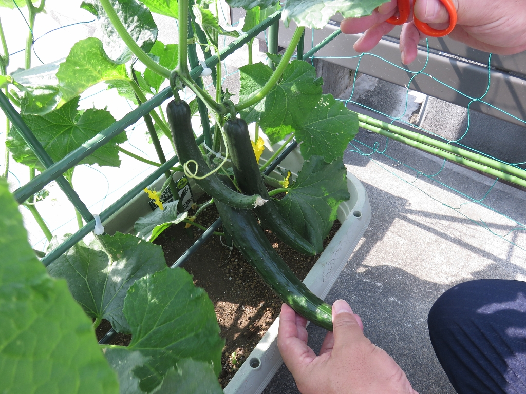 そして、きゅうりはたくさん出来ました。ご入居者からも「すごいわ!早く食べたいわ」などという声も聞かれます。夏に向けて野菜達も元気に育っています★
