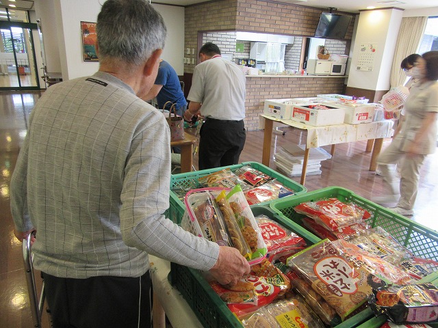 売店が再開しました。週に1回施設のホールが