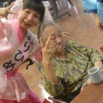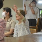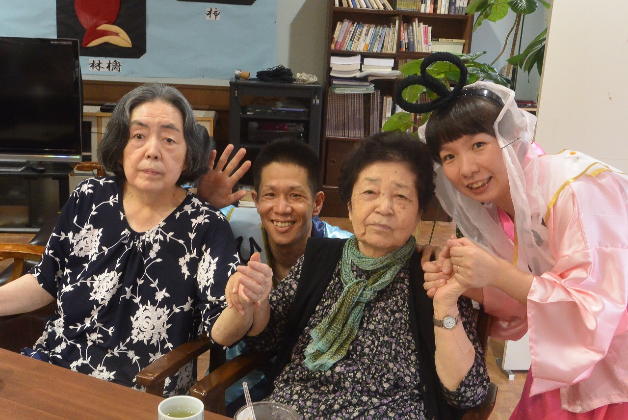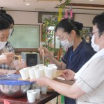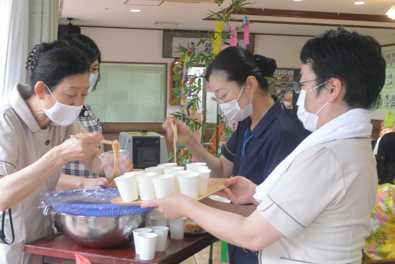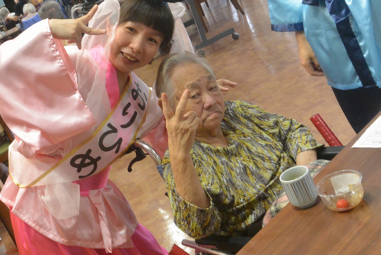 見事織姫に選ばれた女の子。衣装に着替え、パンパンのお腹を抱えながらご入居者の皆様と記念撮影!