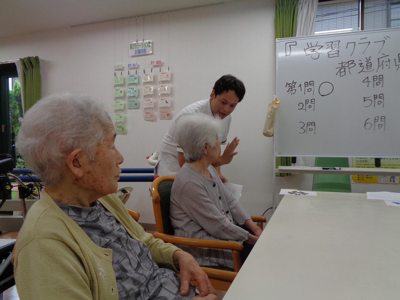 リハビリ室にて学習クラブで都道府県クイズを行いました。