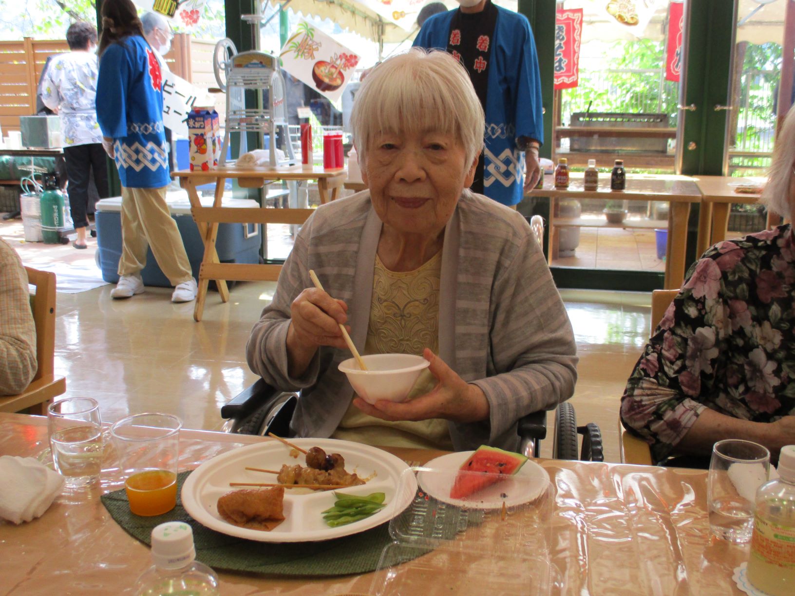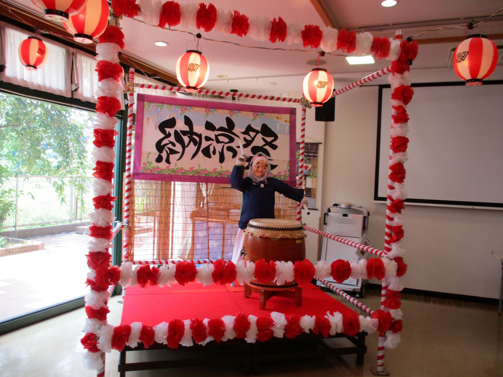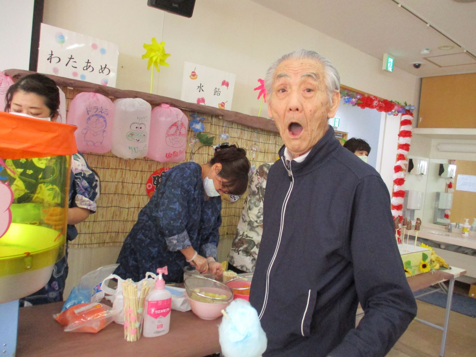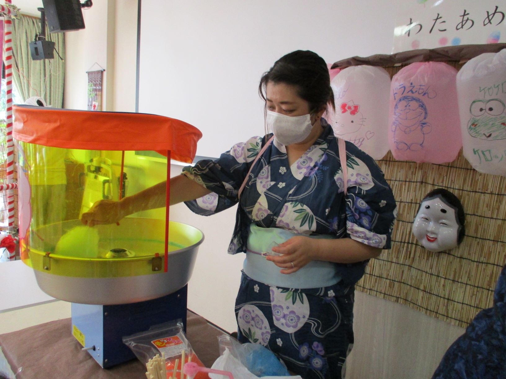 今年のお祭りは、昭和懐かしの雰囲気を再現し、職員にもお祭りの衣装を身につけて、