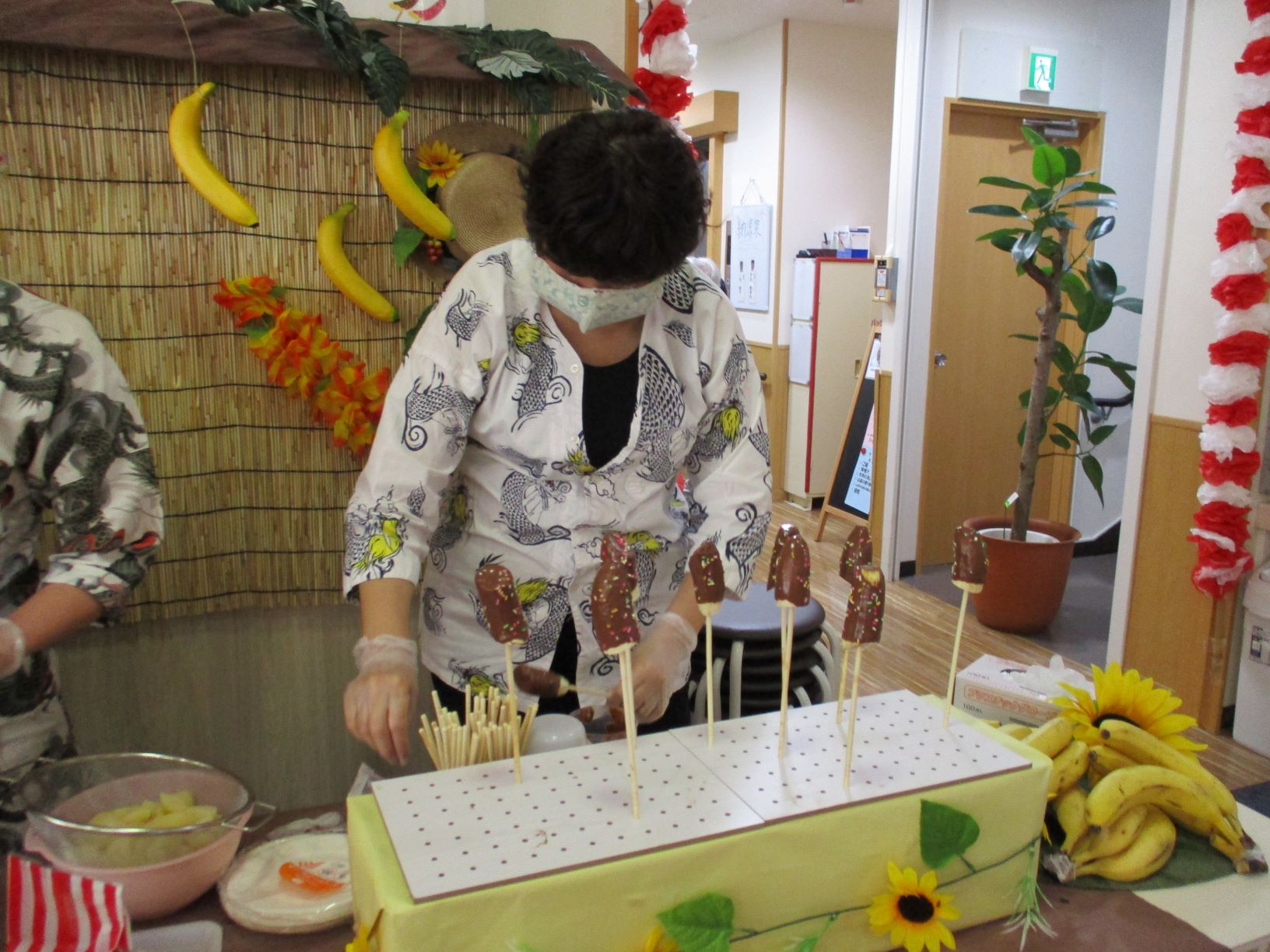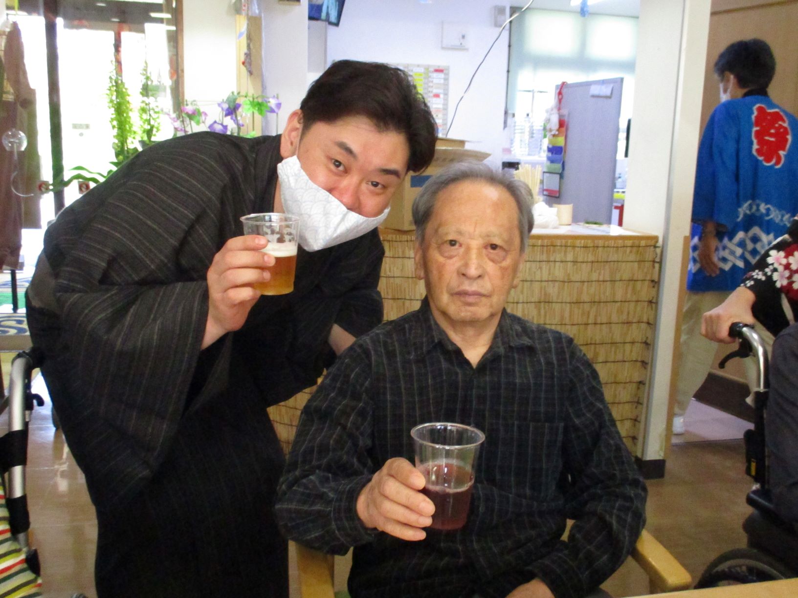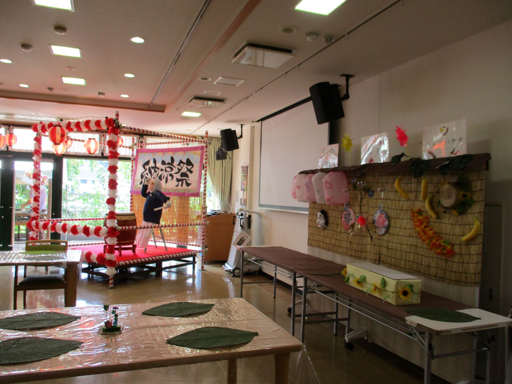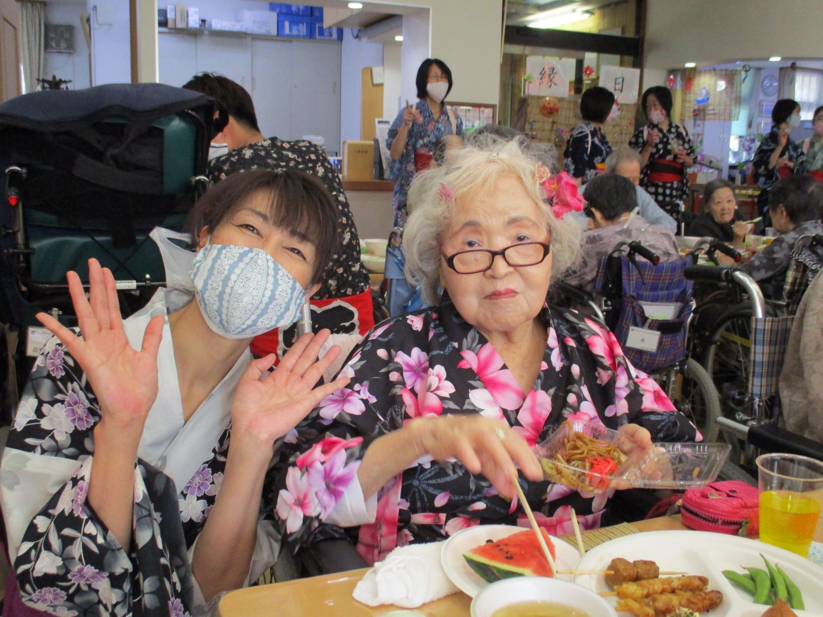 今年のお祭りは、昭和懐かしの雰囲気を再現し、職員にもお祭りの衣装を身につけて、