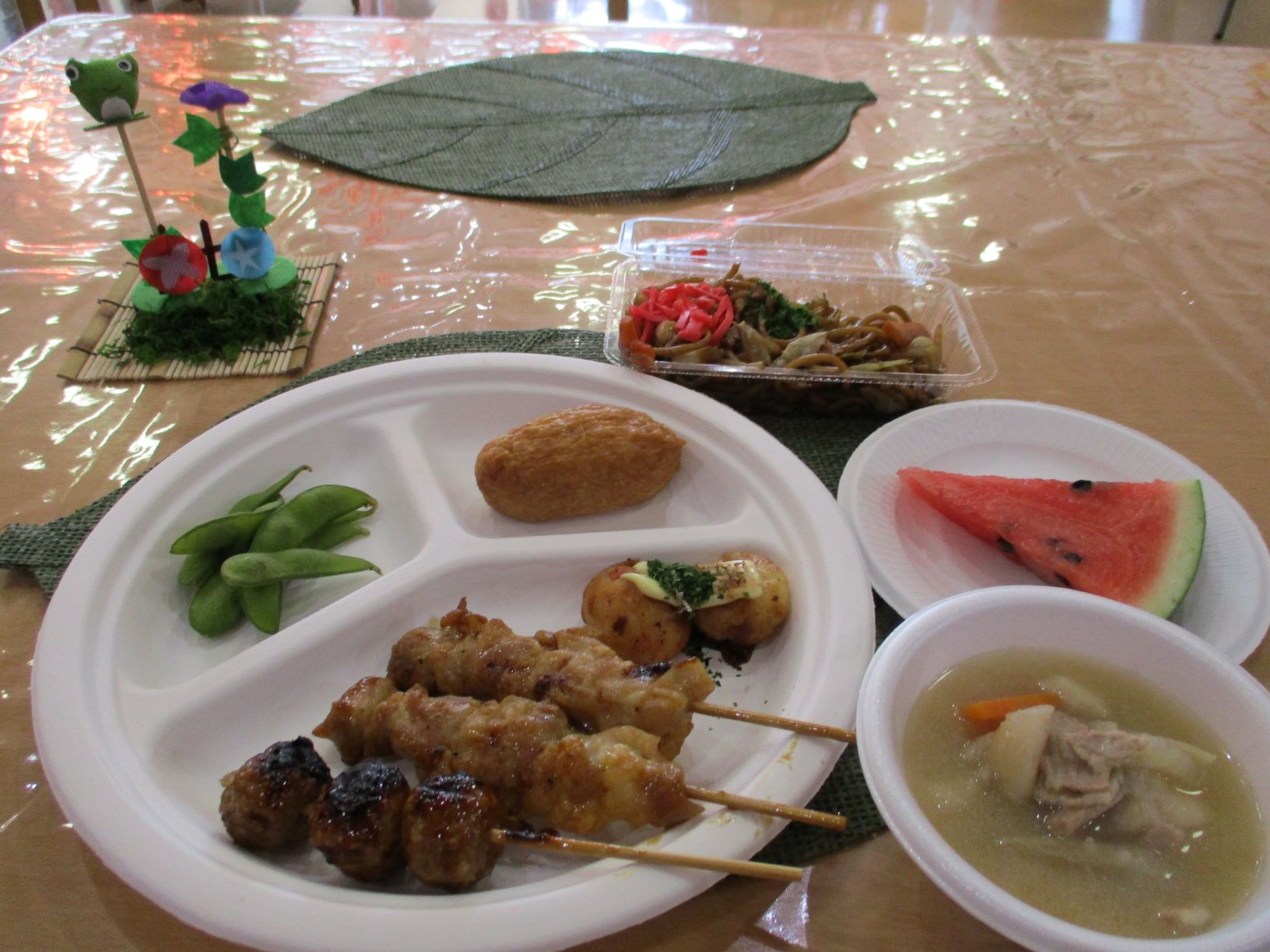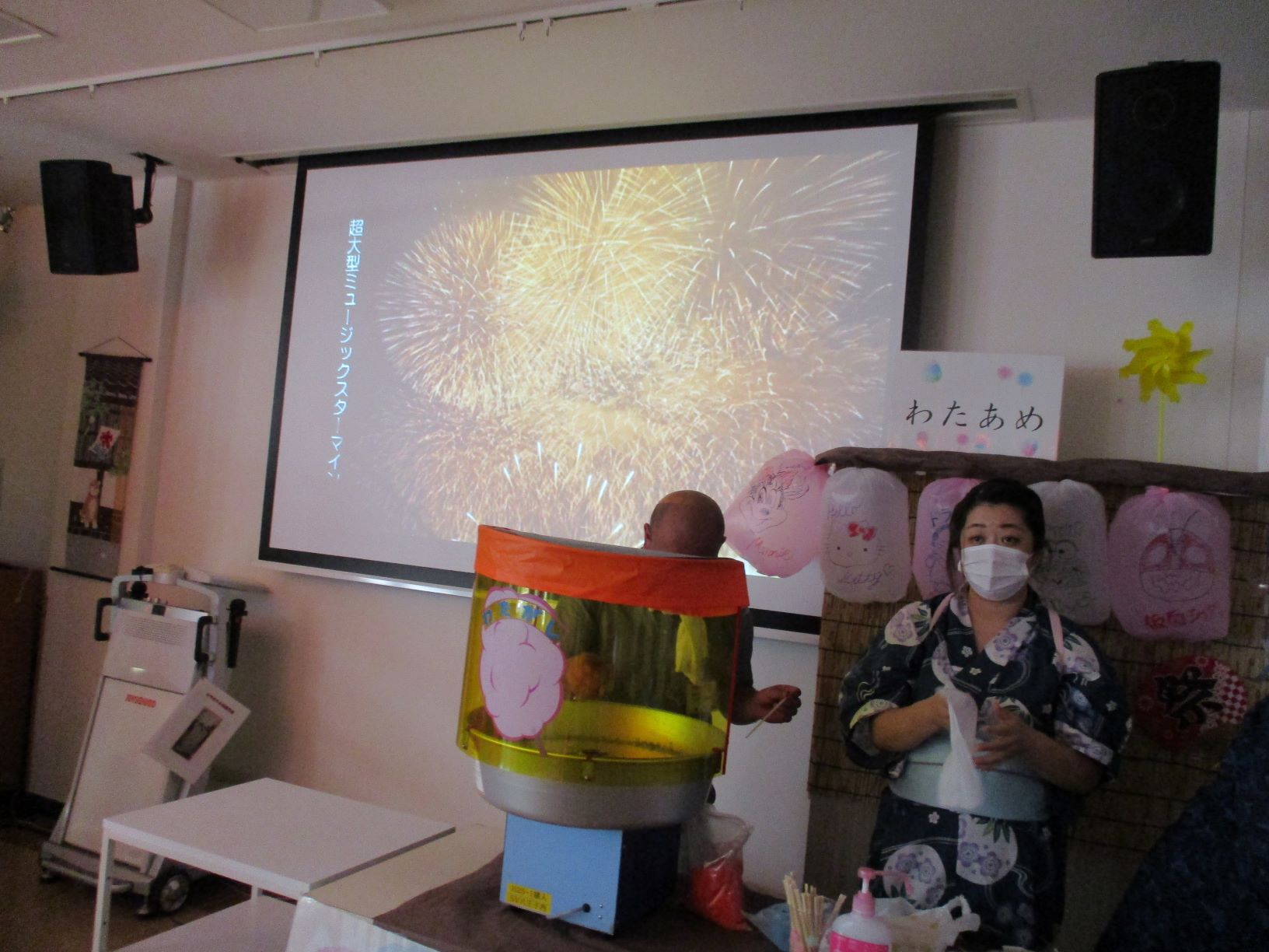 賑やかに盛り上がりました。花火の映像と音が涼しさを演出し、懐かしの屋台で、