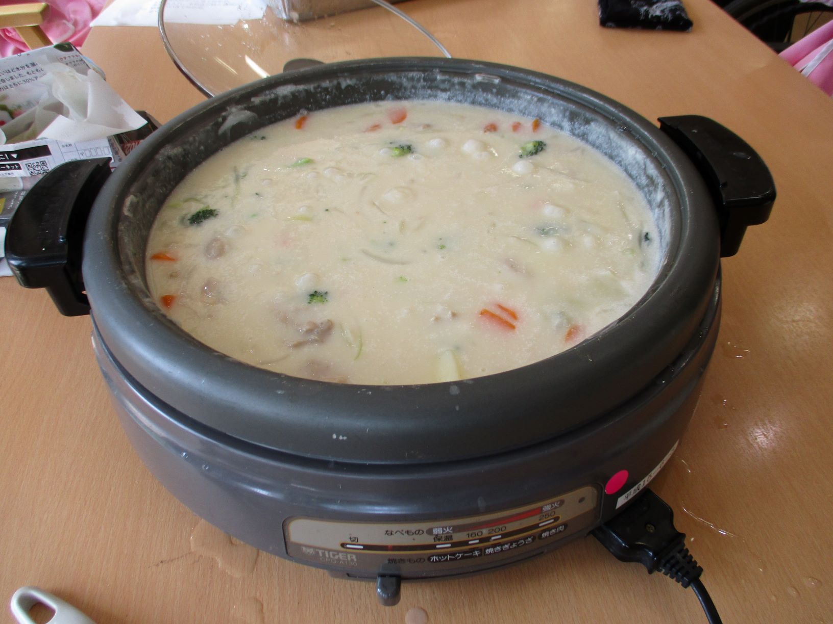 料理教室は、クリームシチューを作り、「ちょっと、しょっぱくない?」
