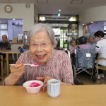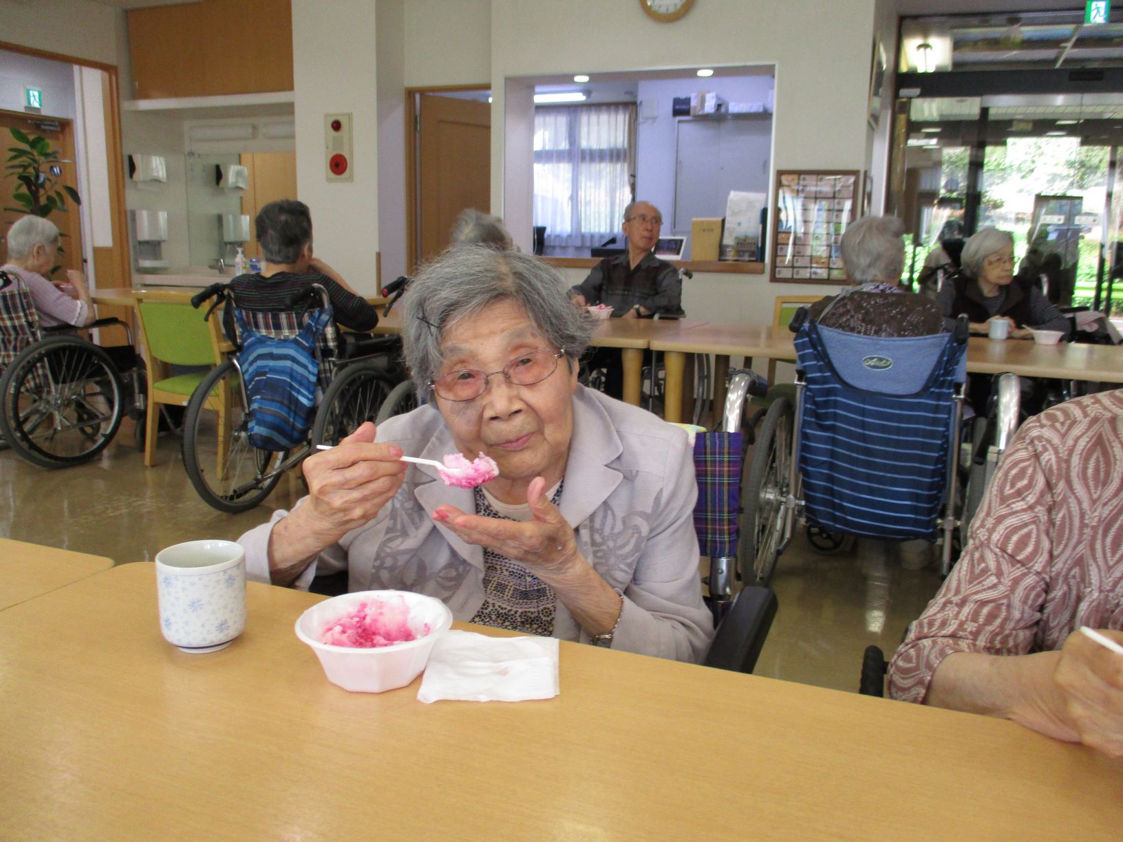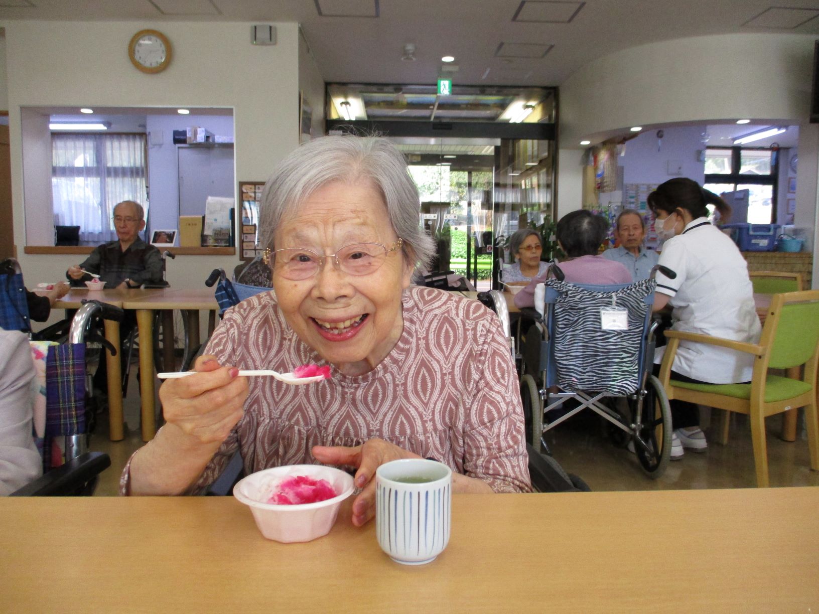 午後の手作りおやつでは、「イチゴミルクかき氷」を提供致しました。