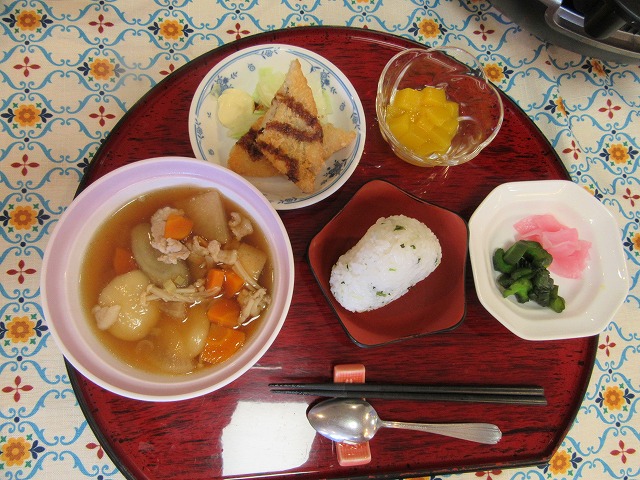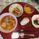 本日のメニューはすいとんとおにぎりです。