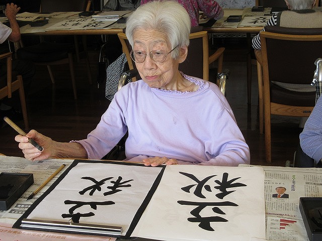 今月からまた書道などのレクレーションは