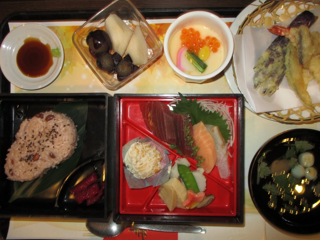 昼食には、お刺身に天ぷら、茶碗蒸しとご用意させていただき召し上がって頂きました。