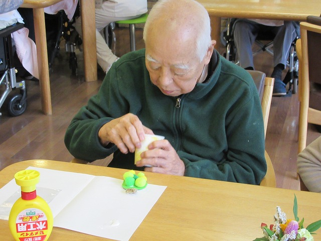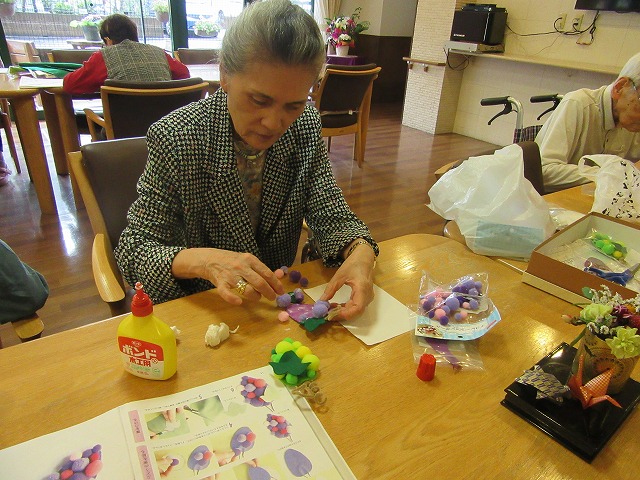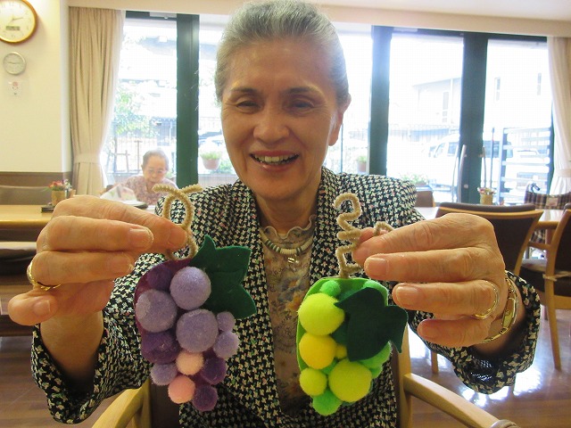 ご入居者の皆様、思い思いに葡萄の房を作っていらっしゃいました。