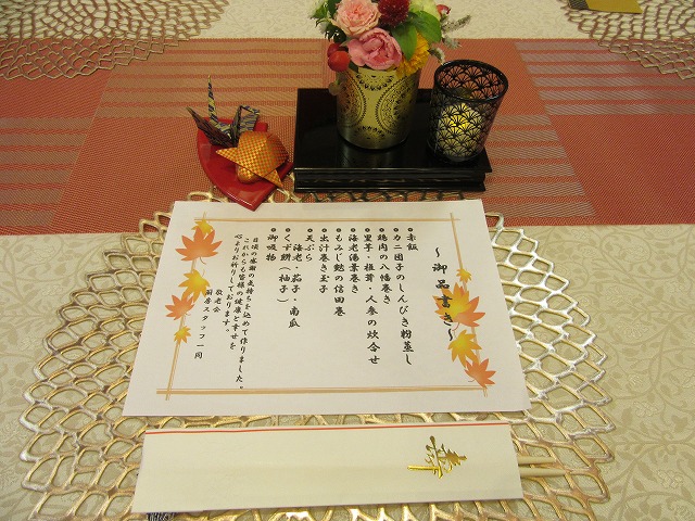 本日はいつも以上にまごころをこめて「祝い膳」を提供してくれました。
