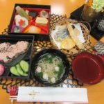 煮しめ、手作りだし巻き玉子、天婦羅三種盛り、もみじ麩の新田巻き、