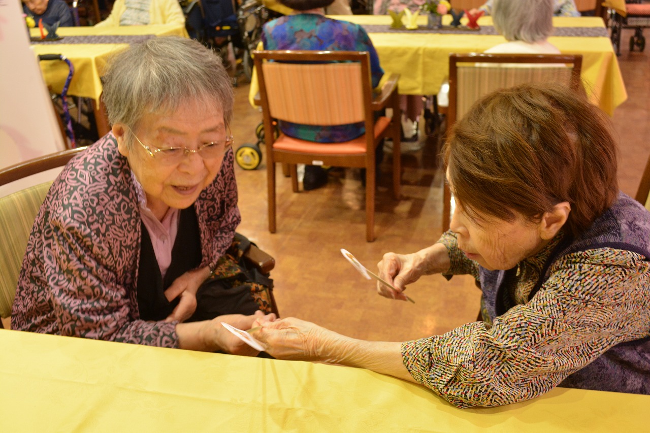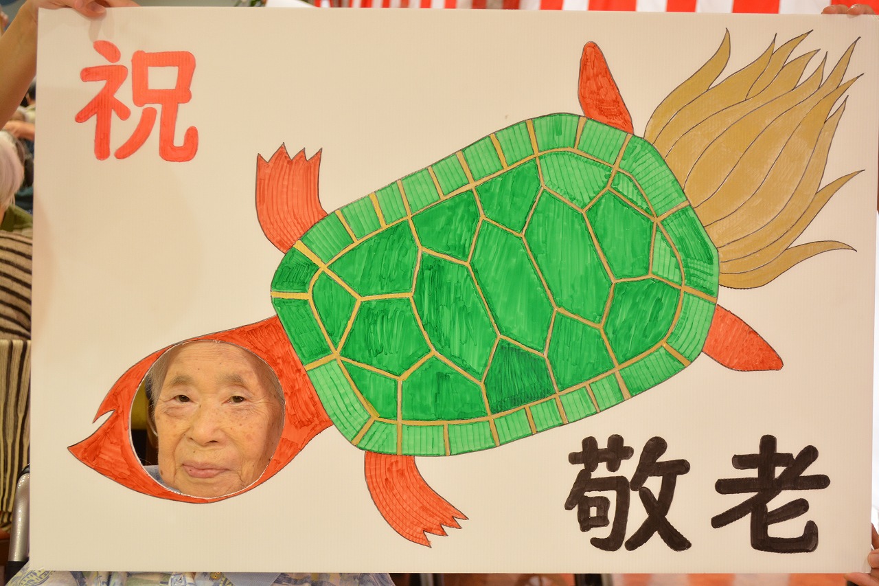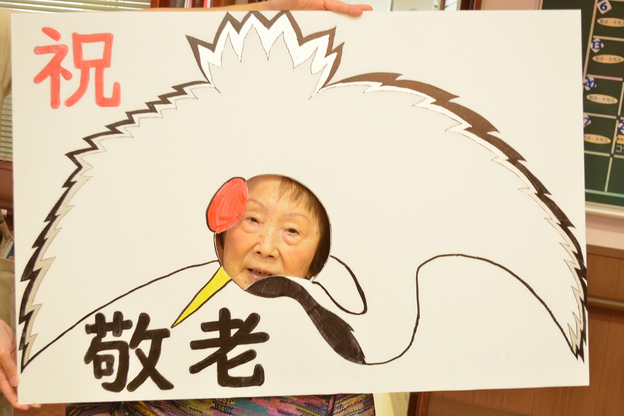 わくわく敬老会と題し、鶴亀くじびきを行い、鶴亀のパネルで写真撮影♪
