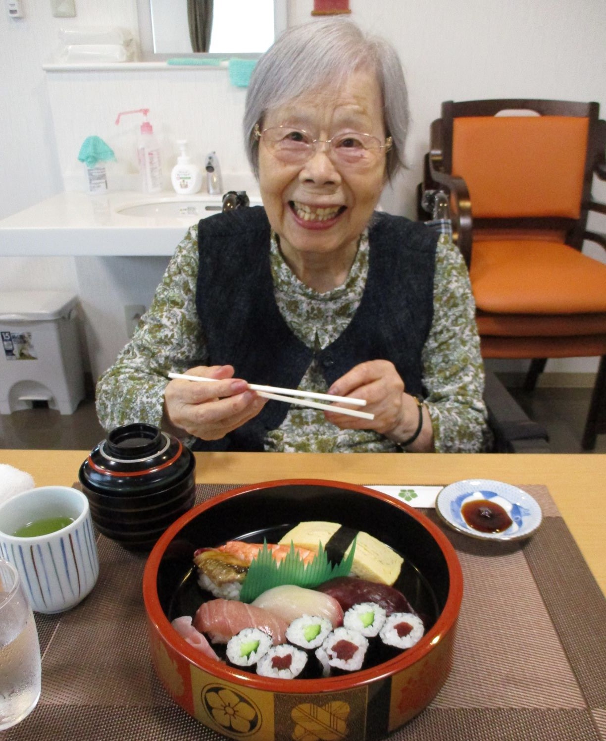 マグロ、エビ、穴子、等々召し上がり参加されたご入居者は、