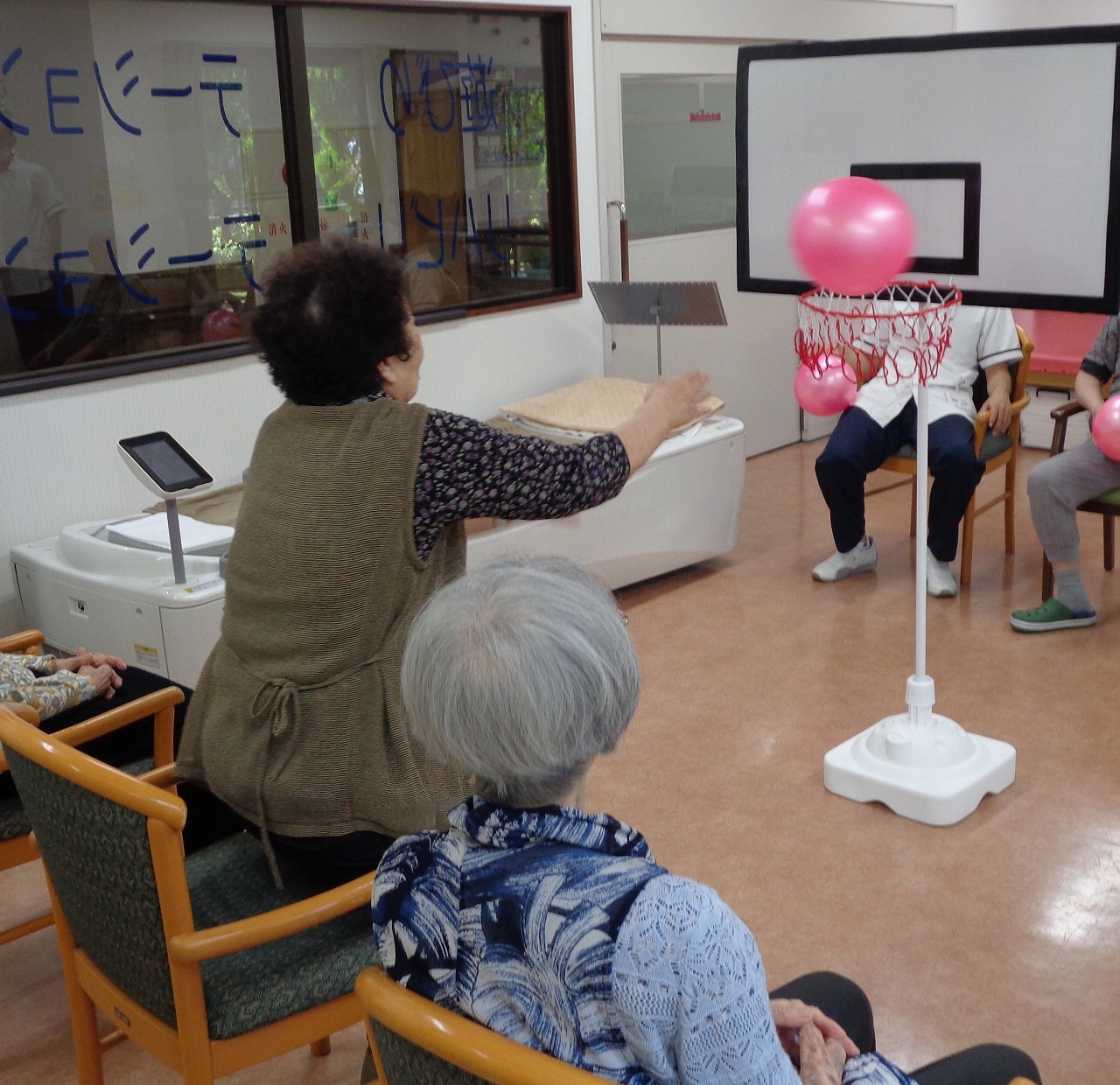 「遠いから届かないと思います」と言われながらも、しっかりとリングまでボールは届き沢山シュートが決まり喜んでおられました。