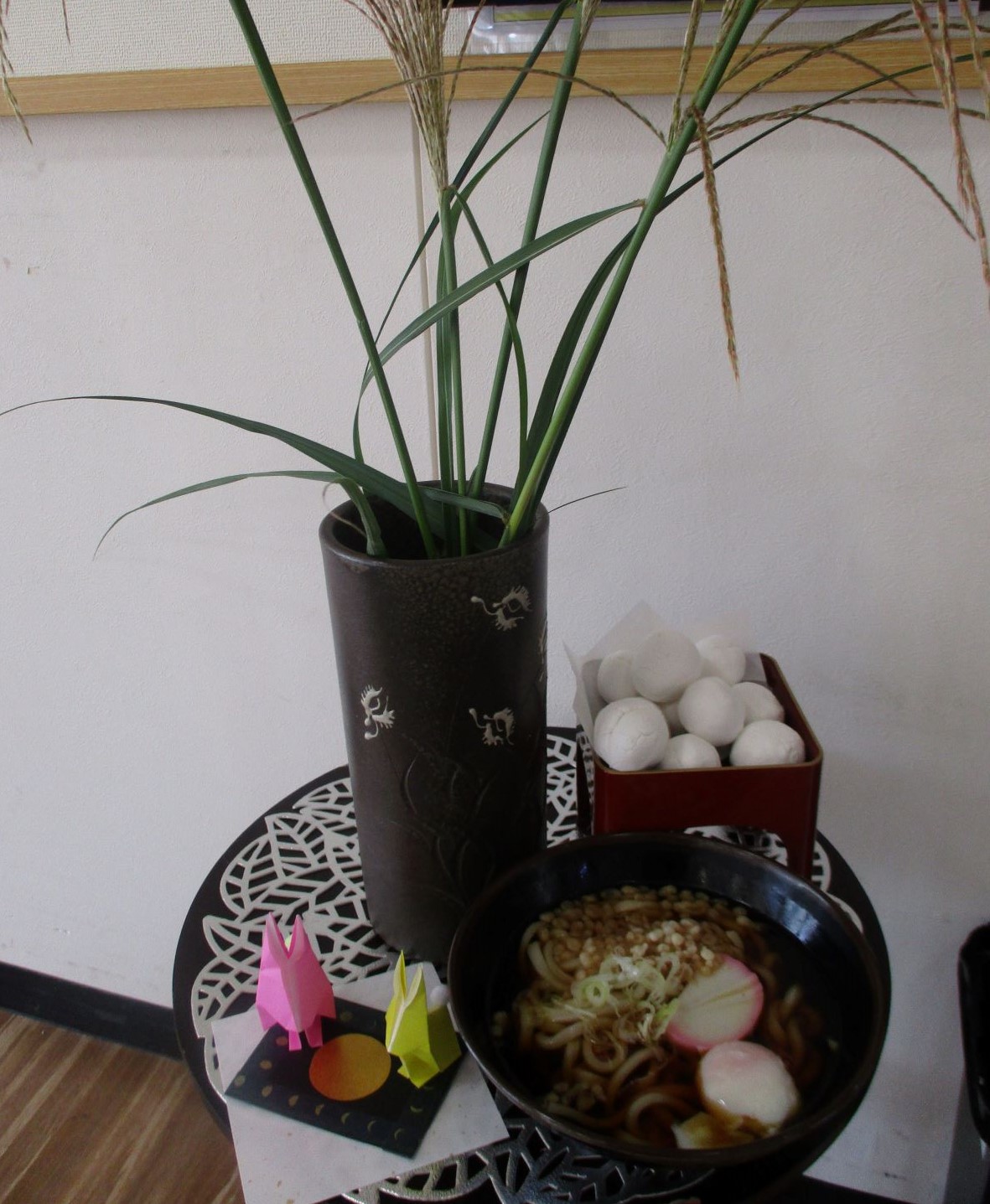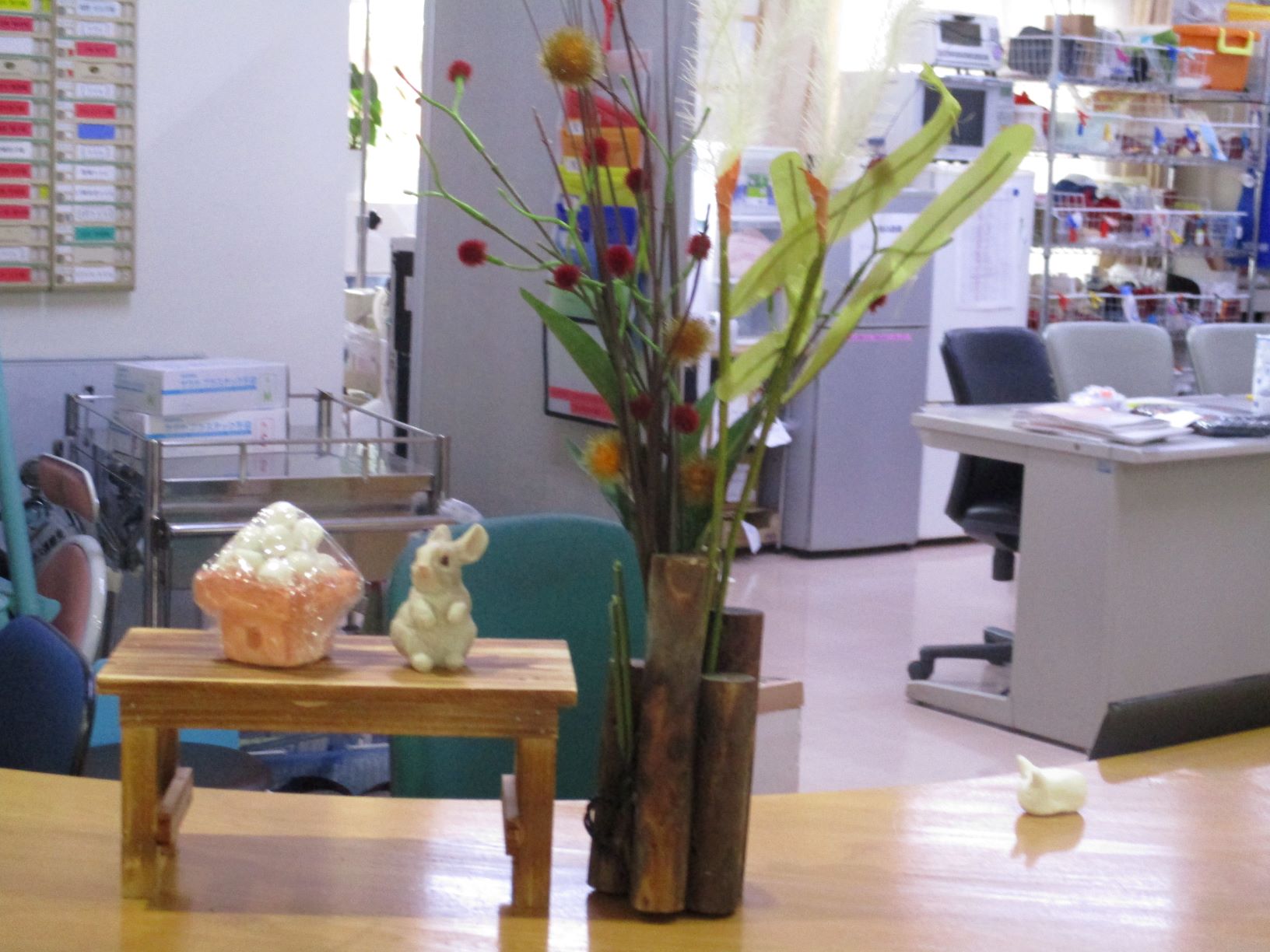 ホールでは、うさぎと月見団子を飾り十五夜の雰囲気を演出させて頂きました。