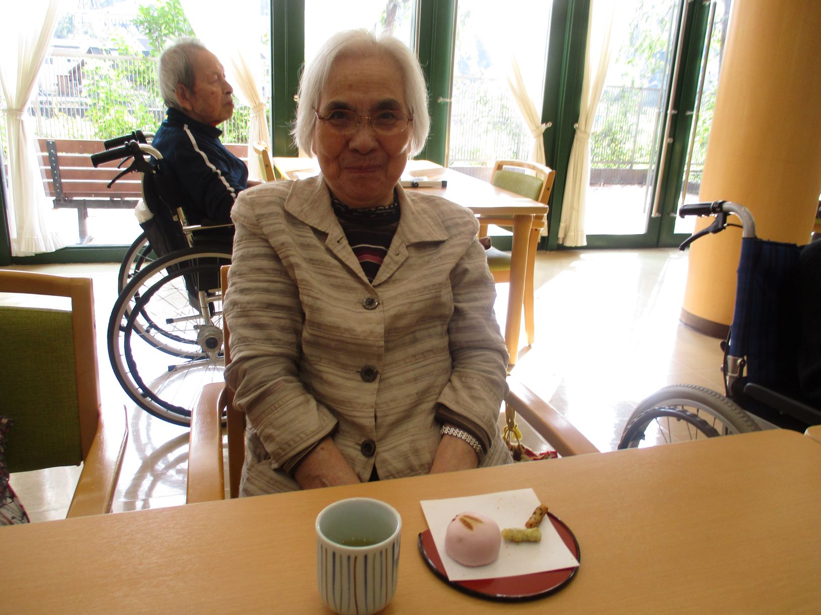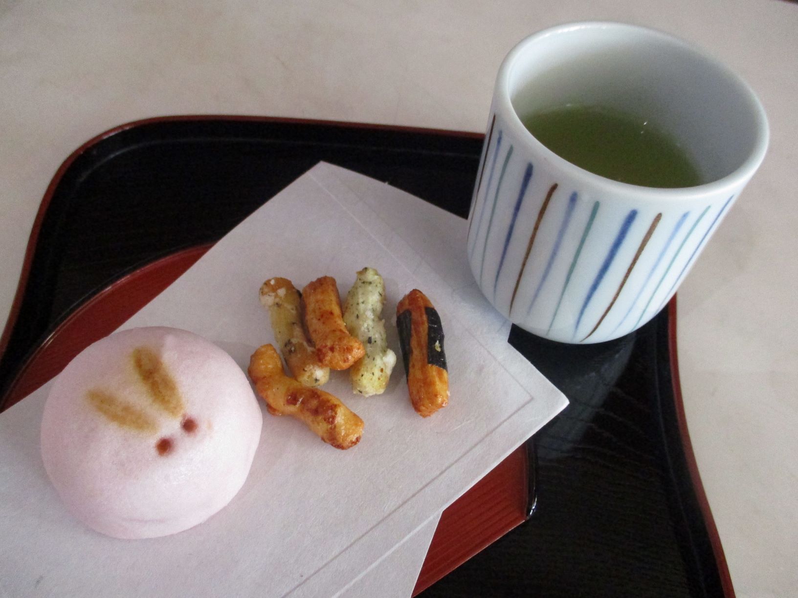 午後のおやつでは、「うさぎのお饅頭」と「おせんべい」を提供致しました。