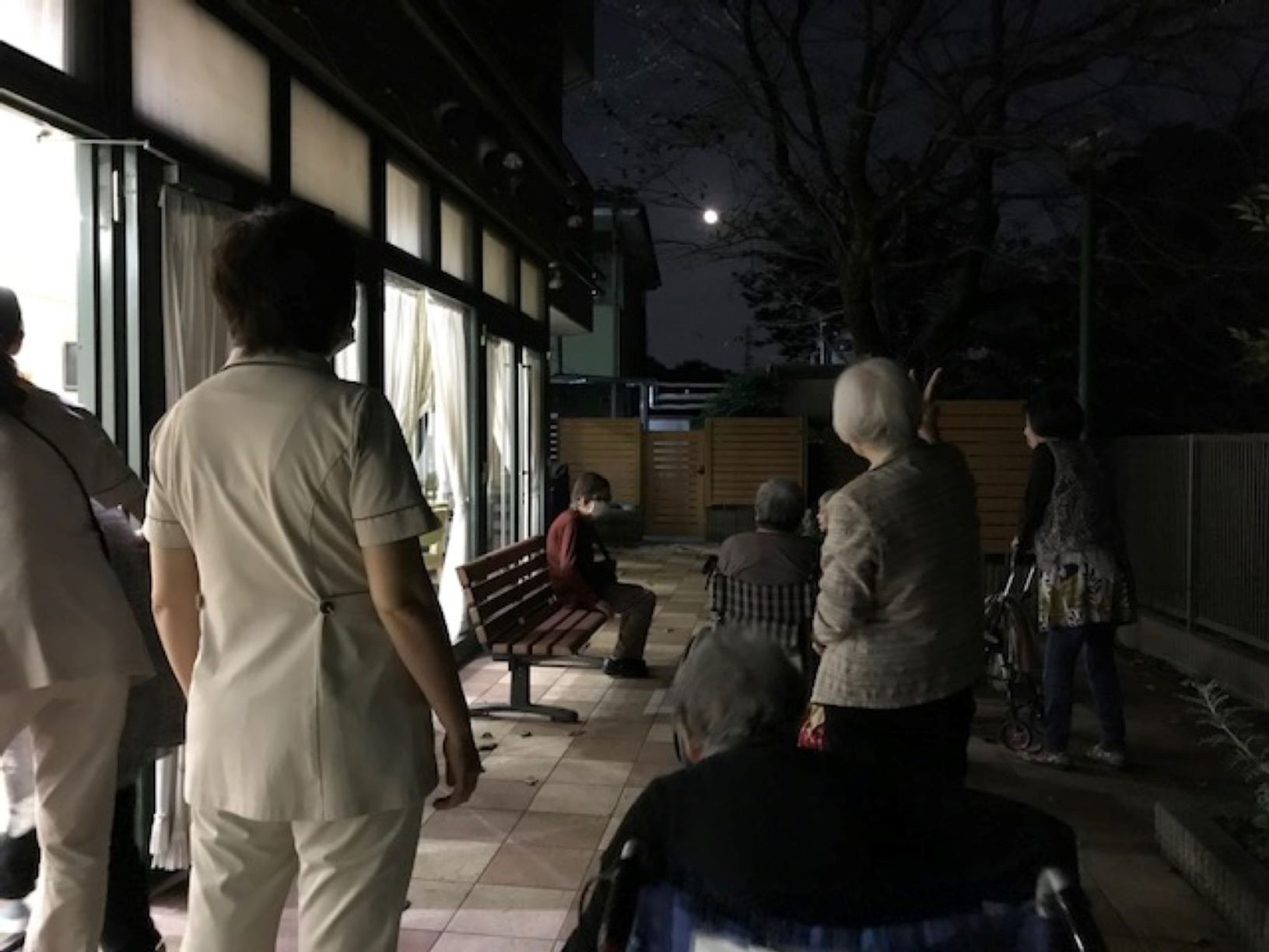 夕食後に、ご入居者何人かでテラスに出て「お月見」をしました。