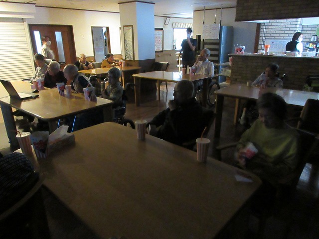 ご入居者の皆様のスクリーンを見る目は真剣そのもの。