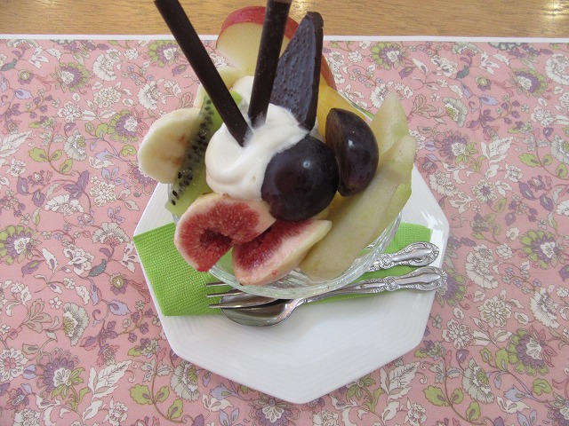 洋ナシ、柿、リンゴ、巨峰、イチヂク等秋のパフェでした。
