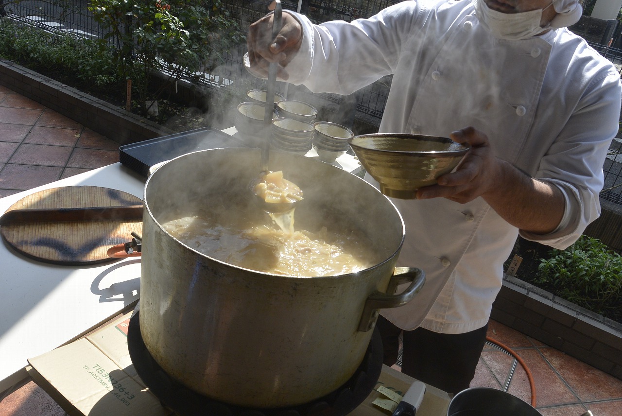 「秋刀魚ももちろんだけど、この豚汁も具沢山でおいしい」と皆様満面の笑み。
