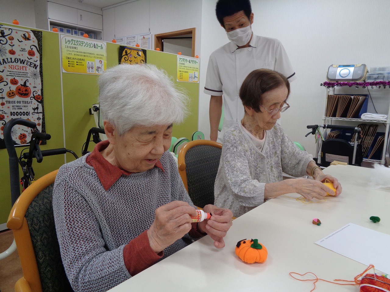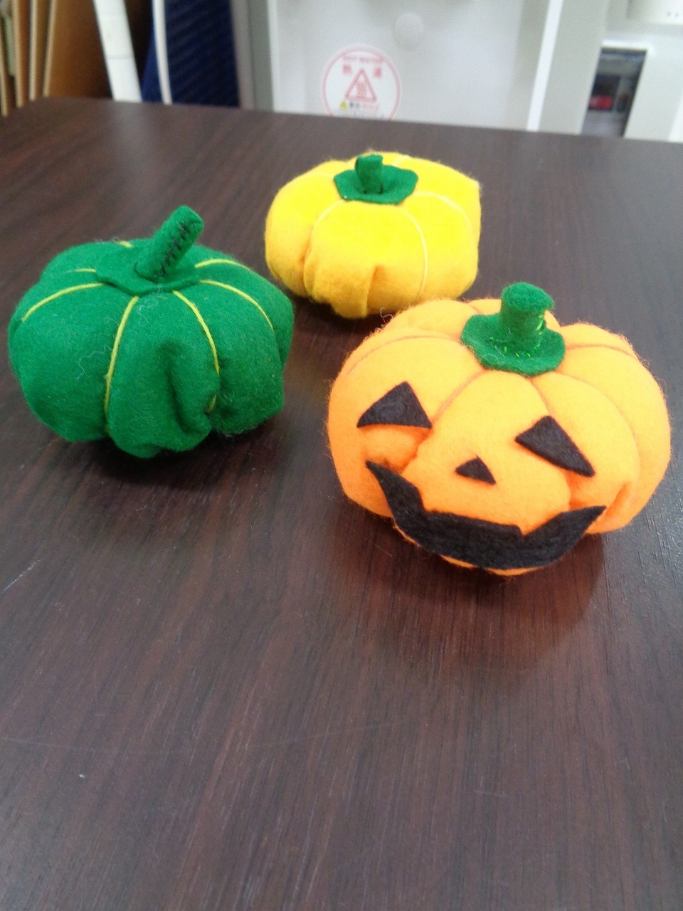 本日の手作りクラブは「フェルトのカボチャ」