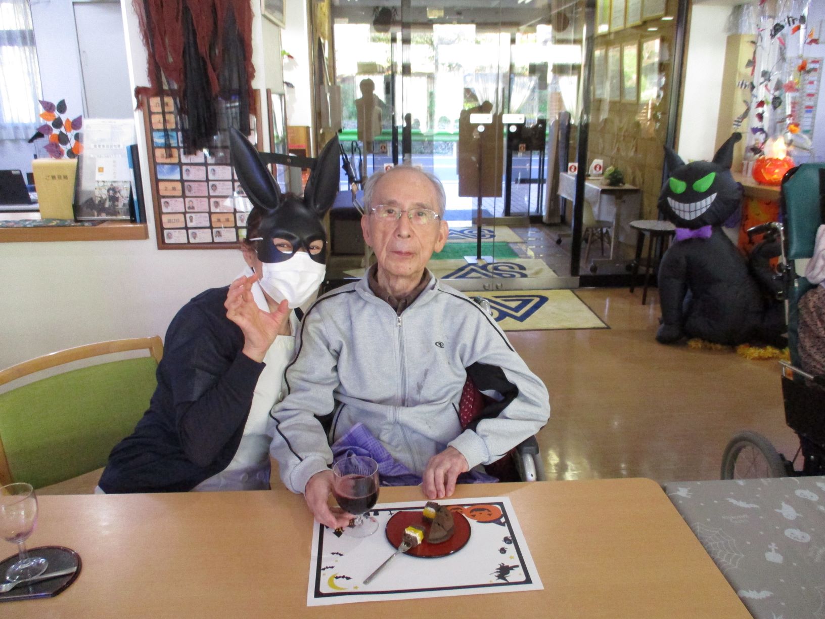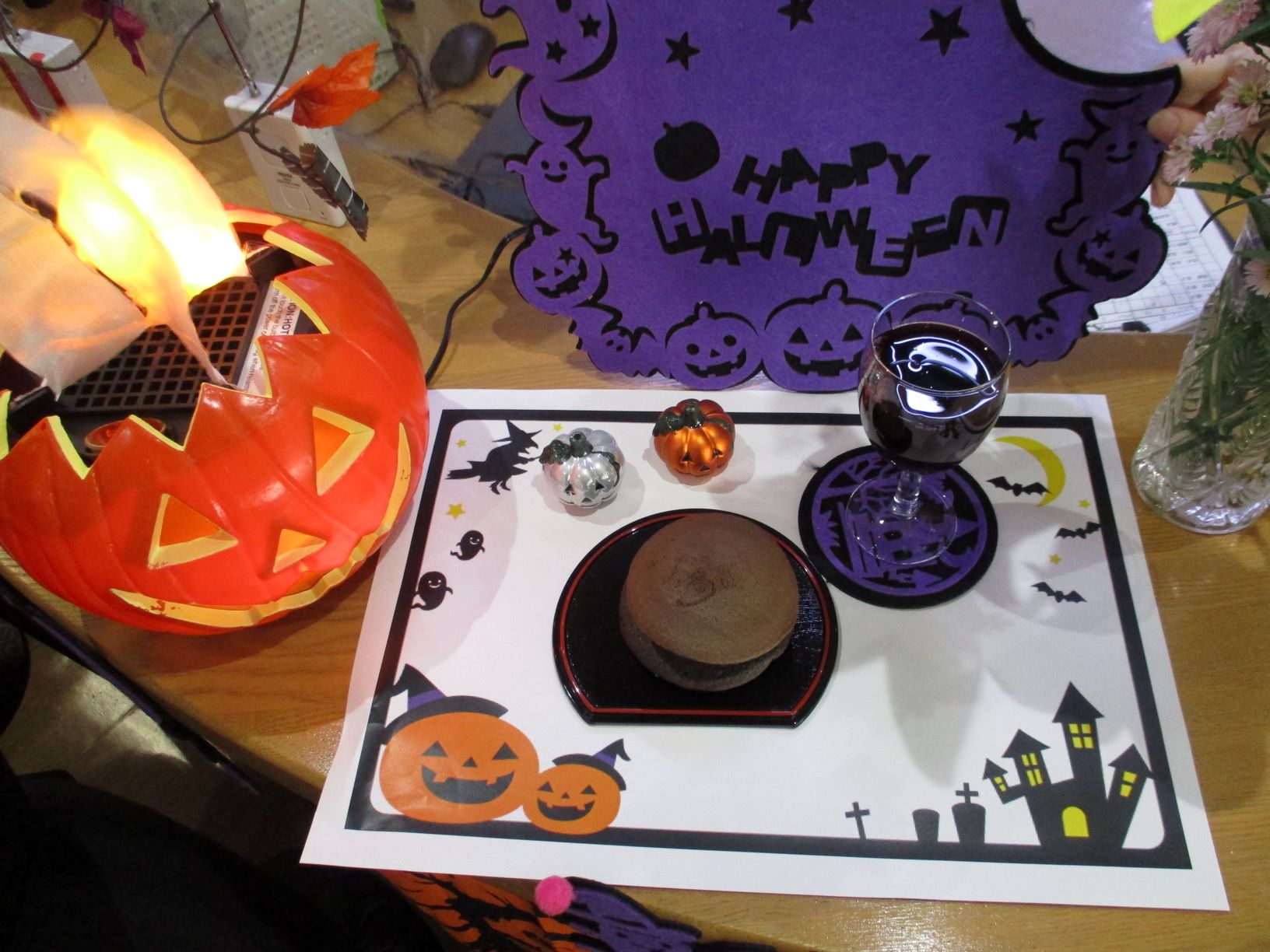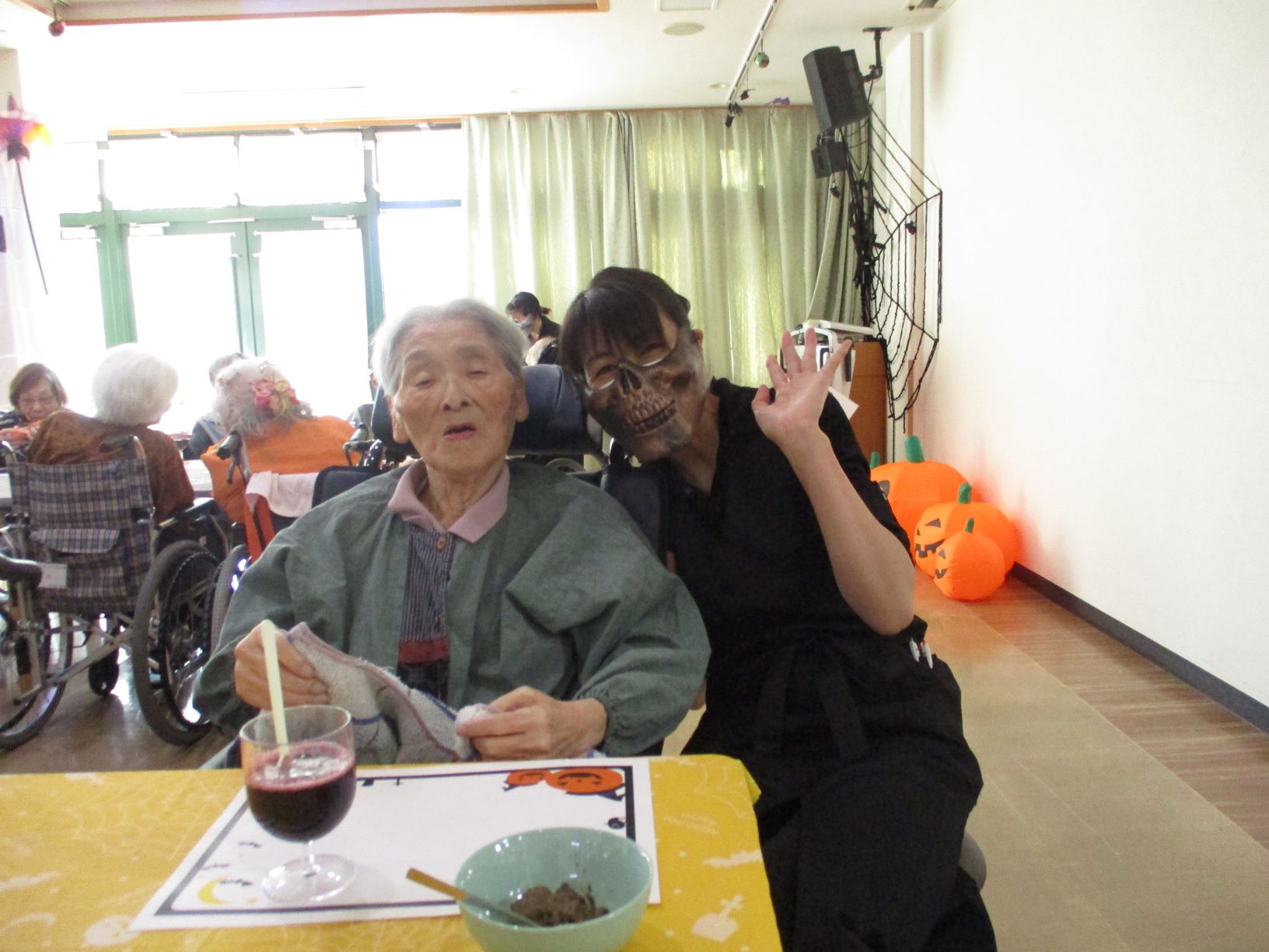 昼食にハロウィンランチをお出しし、皆様「このドリア美味しいね!」