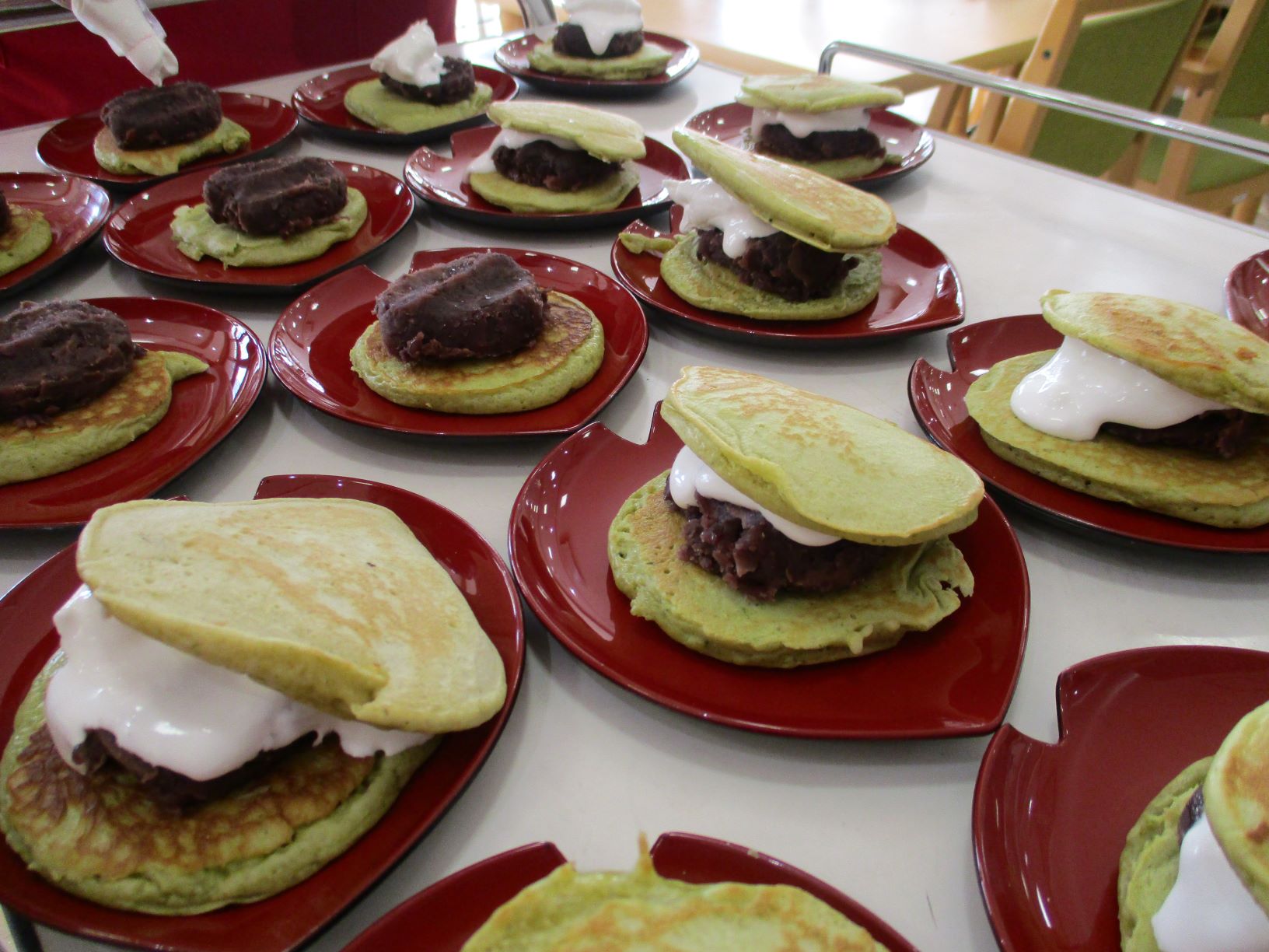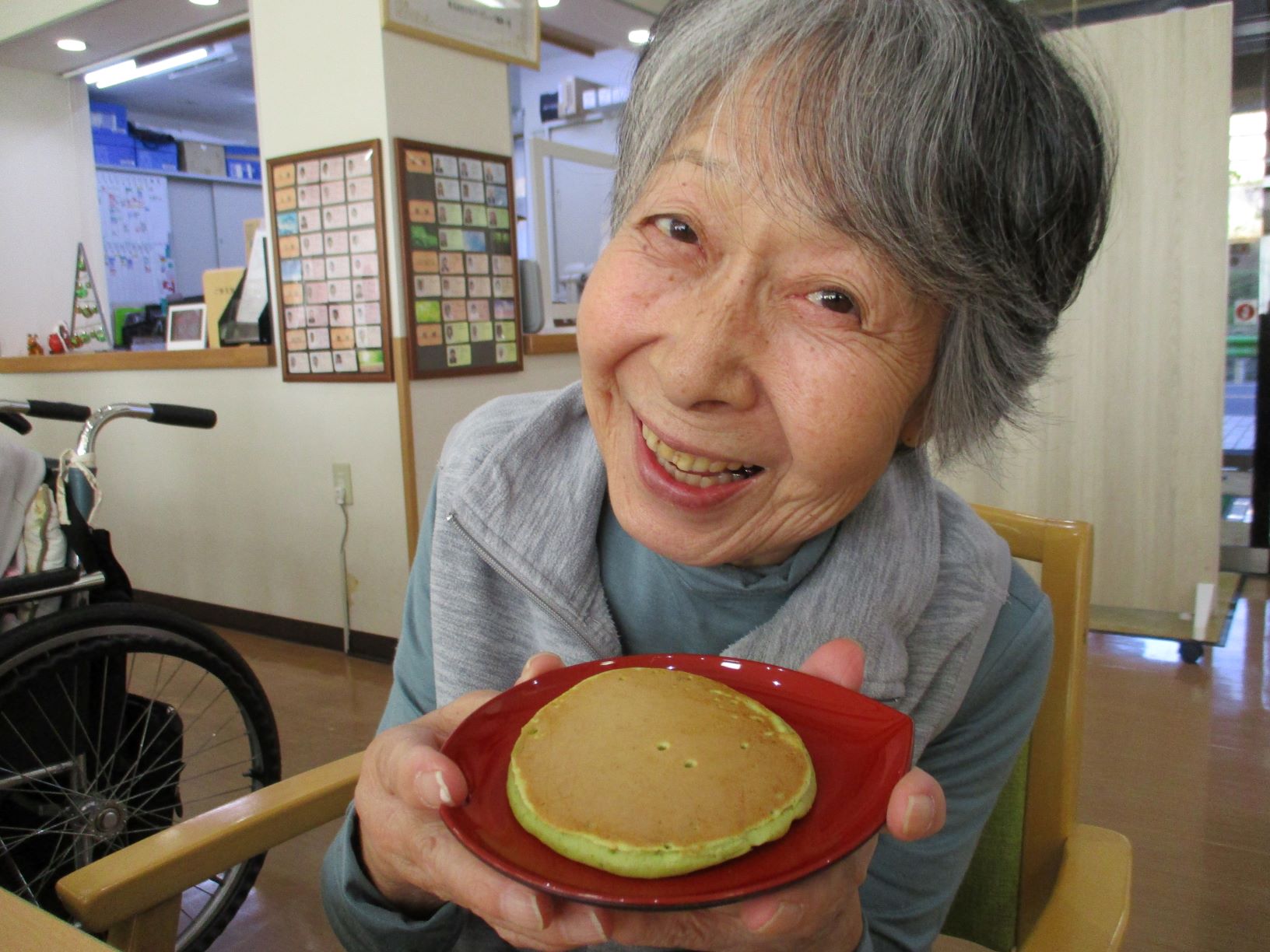 午後の手作りおやつは、「抹茶どら焼き」を作り食べて頂きました。