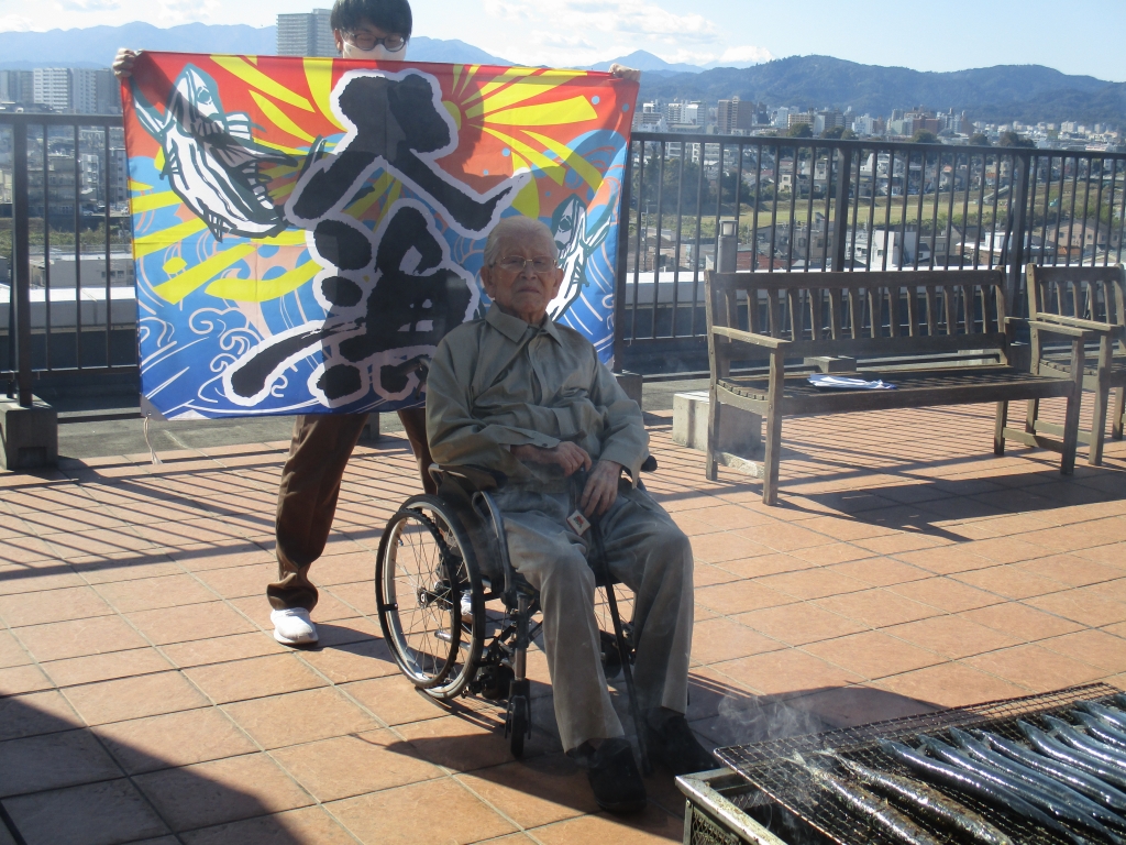 11月4日 シルバービレッジ八王子6階テラスで秋刀魚を炭火焼きし皆さんに召し上がって頂きました。