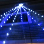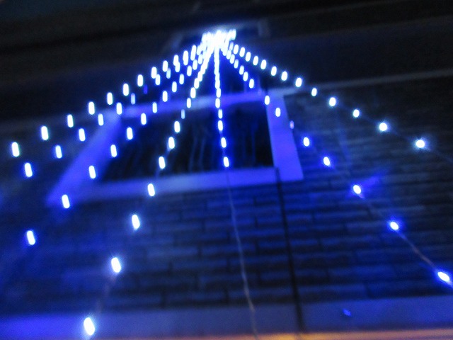 3階のベランダから吊るしたツリー状のLEDライトをメインに、