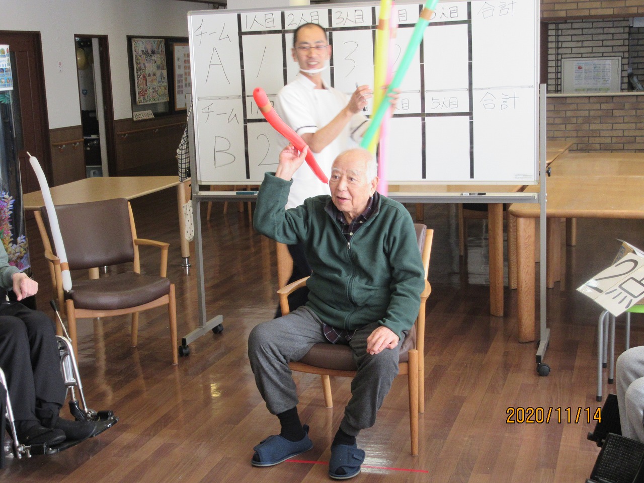 11月14日(土)日野東館1階ホールにて「レクリハクラブ」を行いました。種目は前回に引き続き「ペンシル風船やり投げ」です。