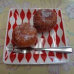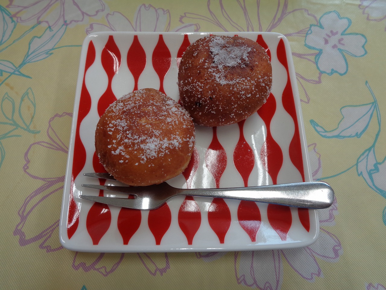 揚げたてのあんドーナッツに砂糖を少しまぶして召し上がっていただきました♪