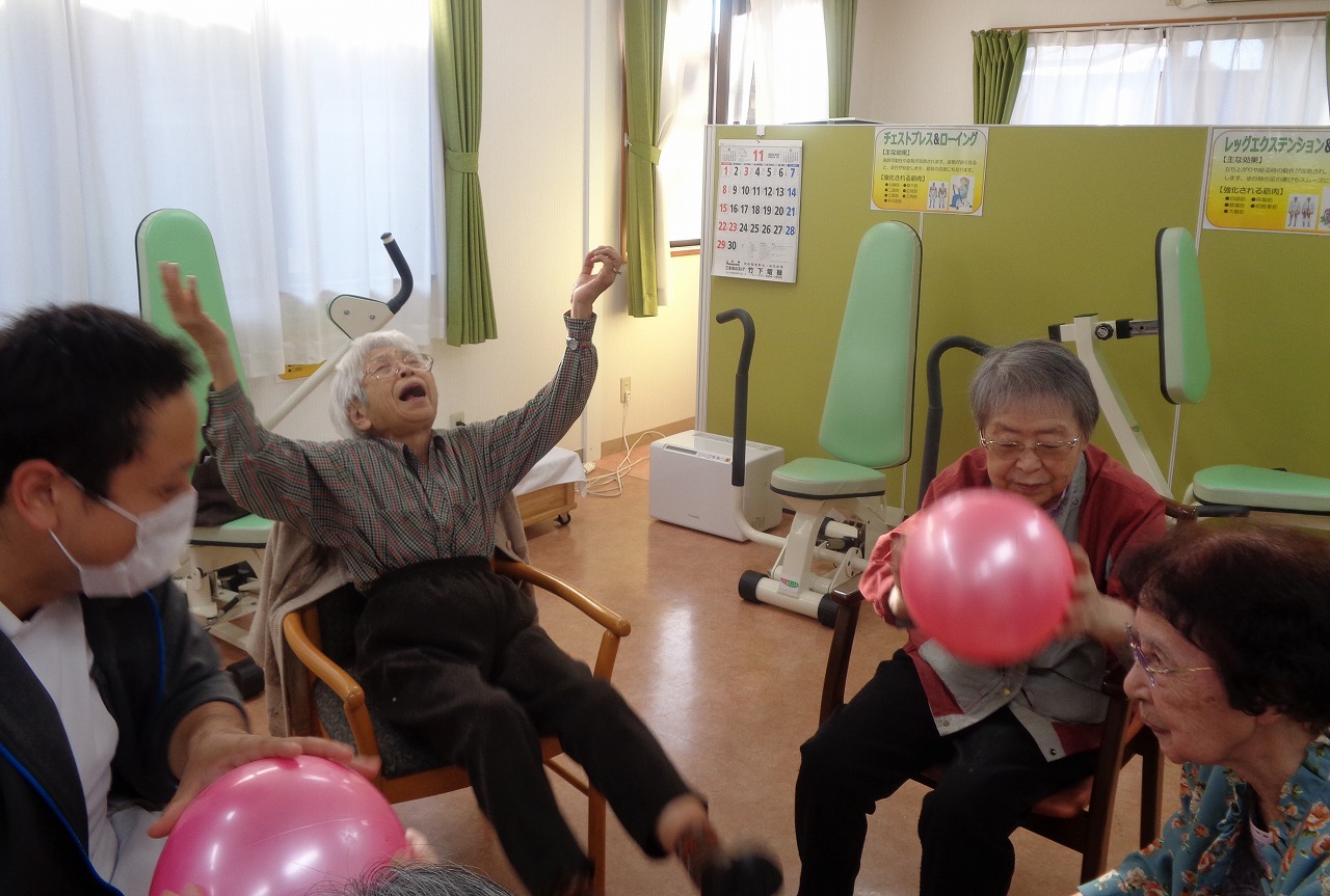今回はミニゲーム多めのボール運動を日野の方々とリハビリ室で行いました。