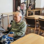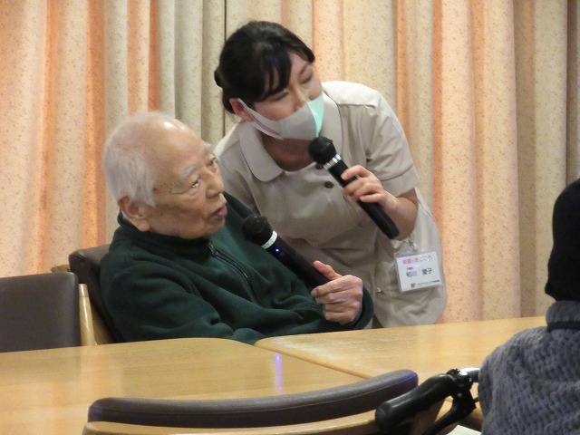 曲が流れはじめ、職員が歌い、マイクを向けると、