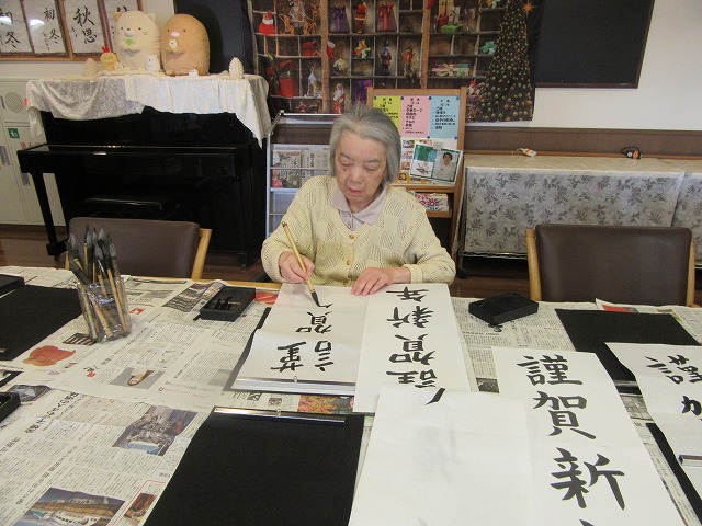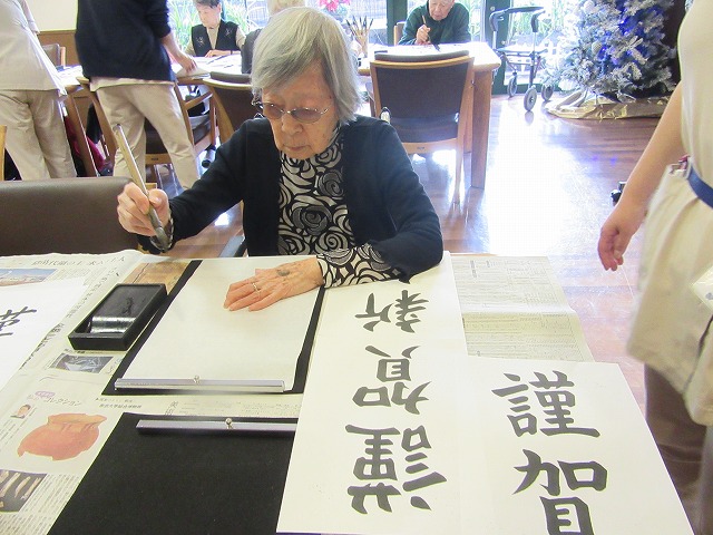 来年の元日に、施設の玄関や各フロアに貼らせていただく