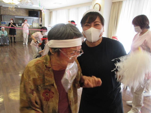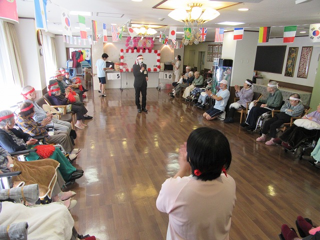 ご入居者には白組、紅組と各階ごとで分かれて戴き、さぁ大運動会の開始です!