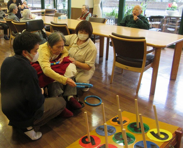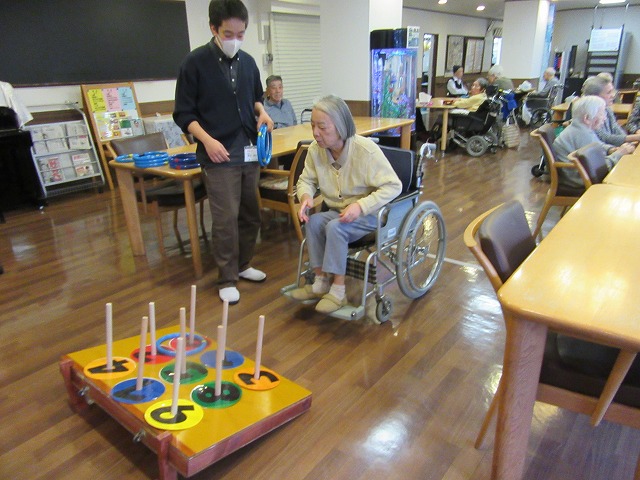 皆様のご要望に応えて、本日、輪投げをいたしました。