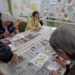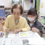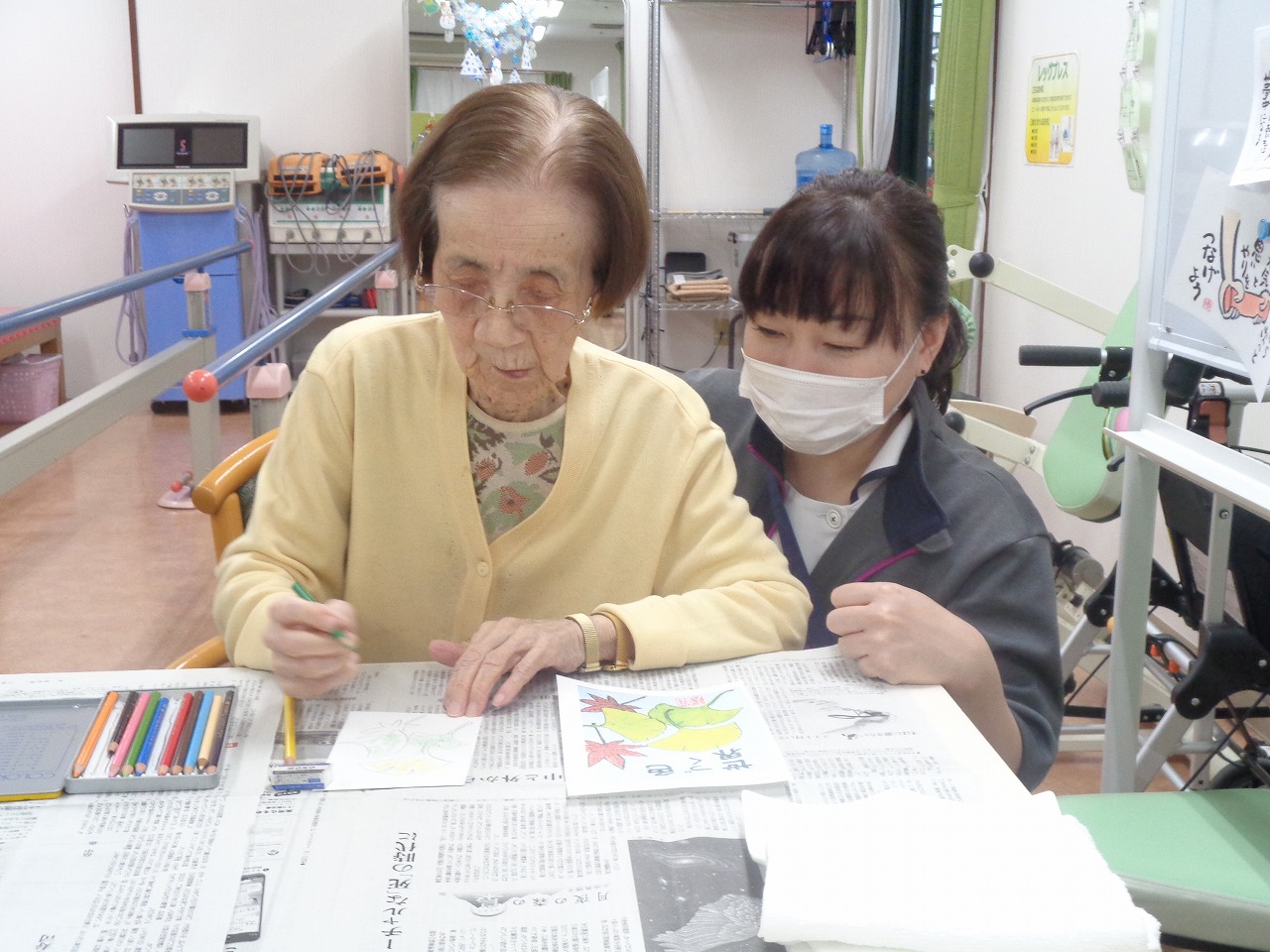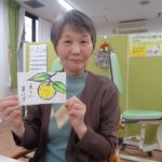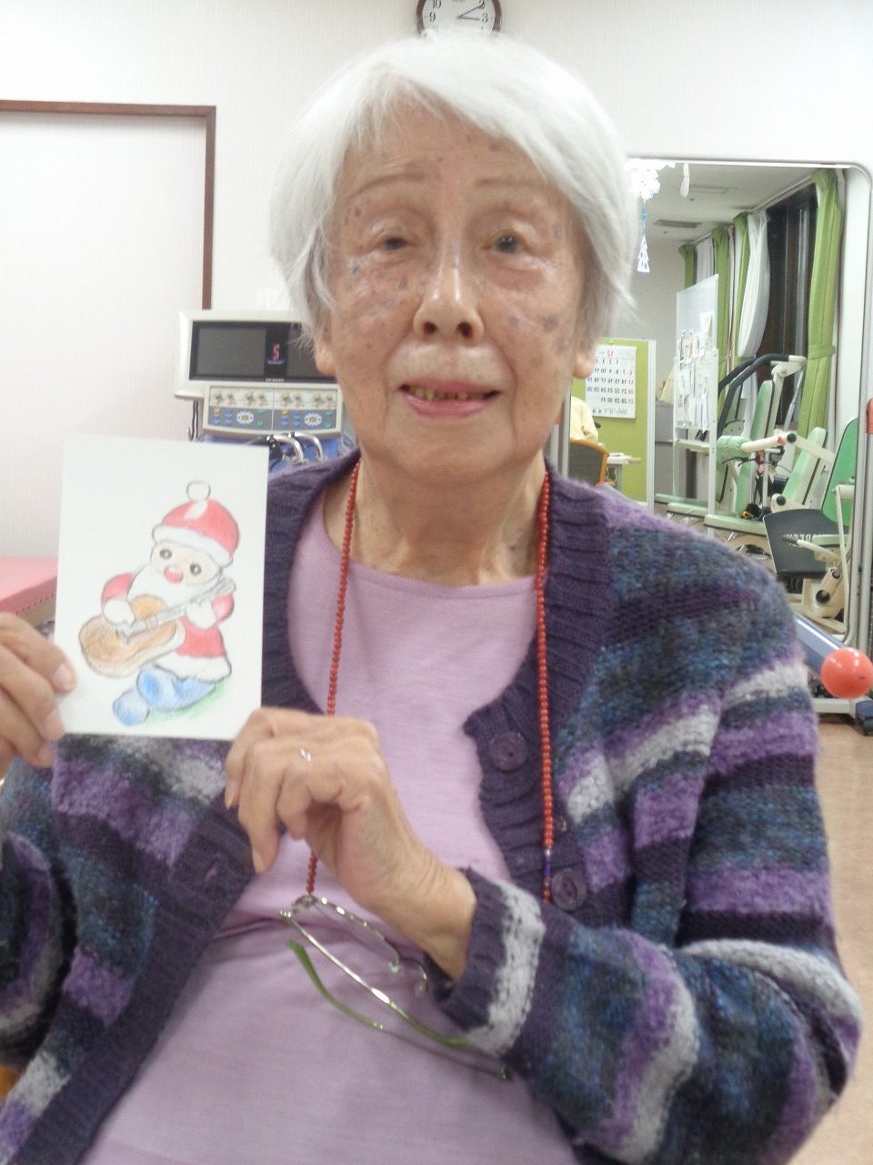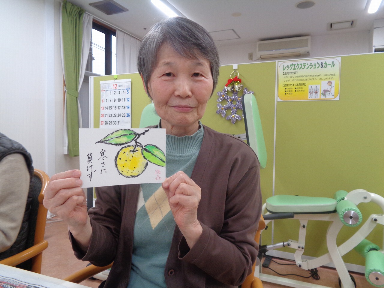 サンタクロースや柚など、12月をイメージするものを描いていただきました。この日は色鉛筆を使う方が多かったのですが、色鉛筆も重ねて塗る事で深い色合いが出ます。