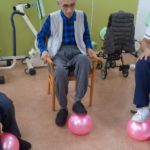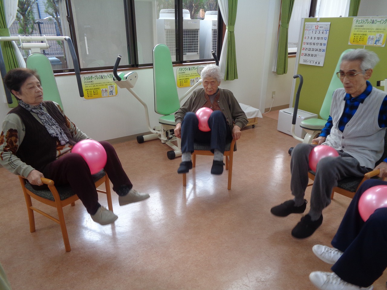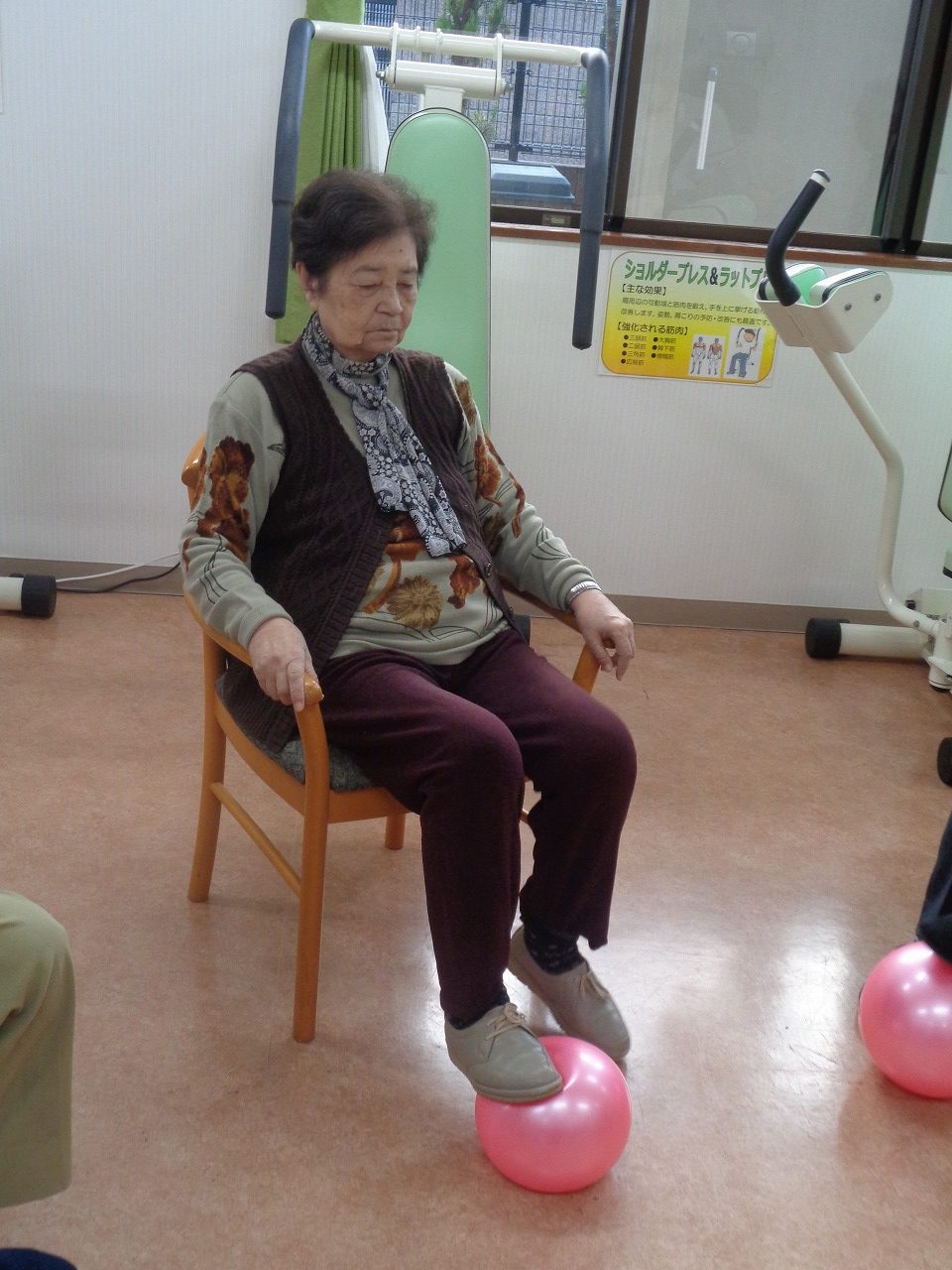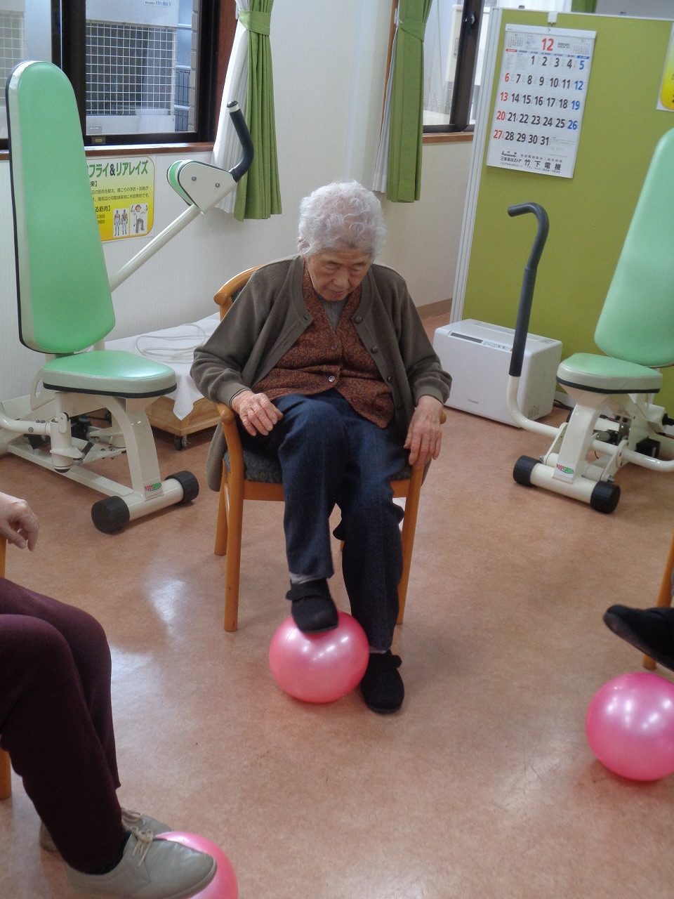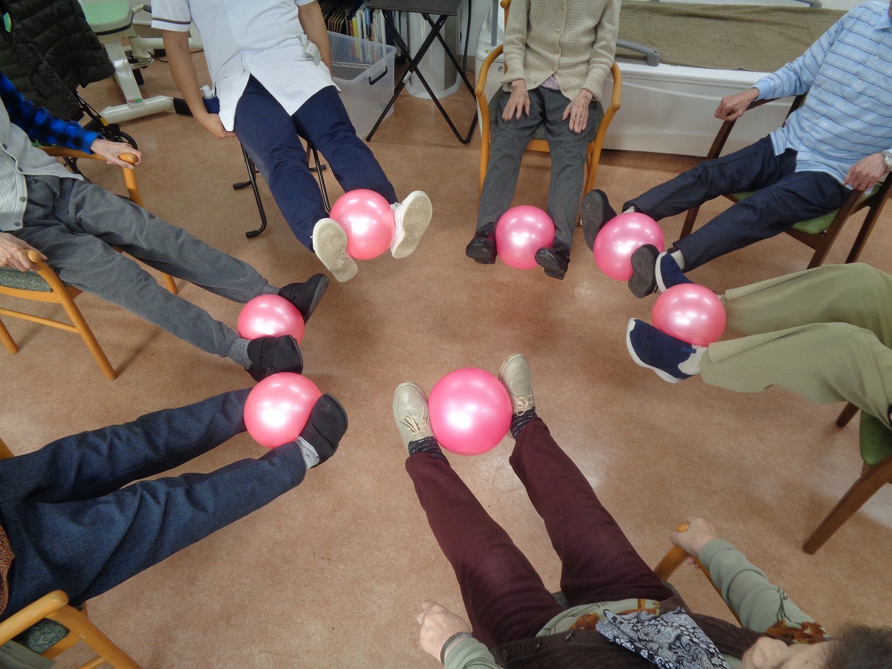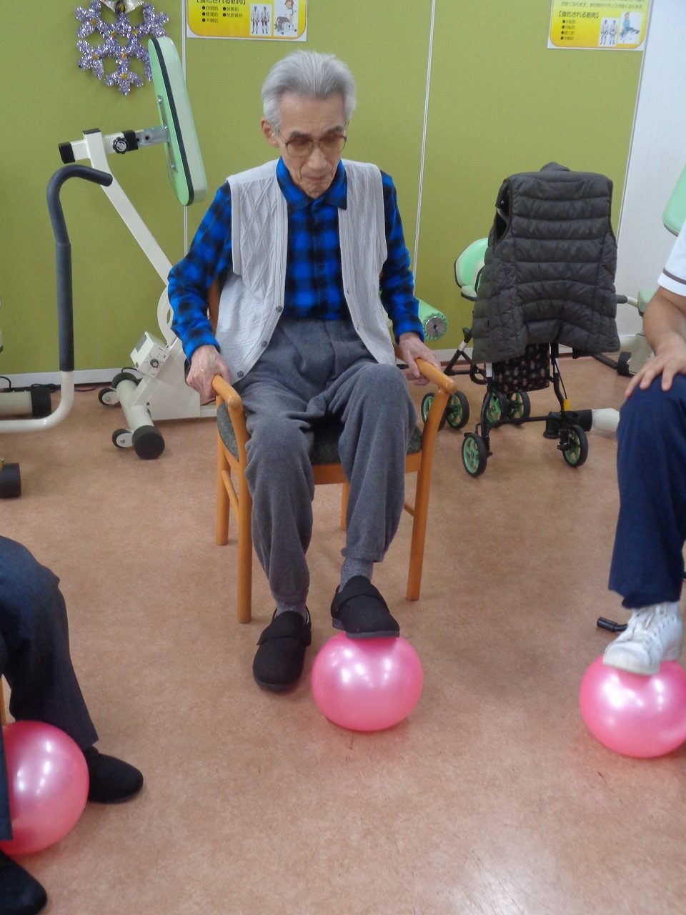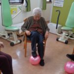 リハビリ室にて下肢を主にボール運動を行いました。