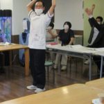 作業療法士による体操を行い、固くなってしまった筋肉をほぐしました。