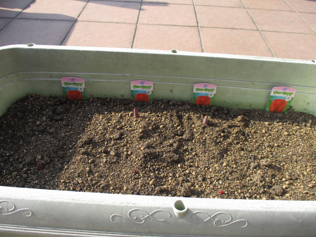 更に、6階屋上に、青木施設長がチューリップの球根を146個植えて下さったので、春になり花が咲くのが楽しみです。「いろいろな種類の、チューリップがあるのね」と皆さん、プランターをのぞき込み、「楽しみね」とお話しされています。