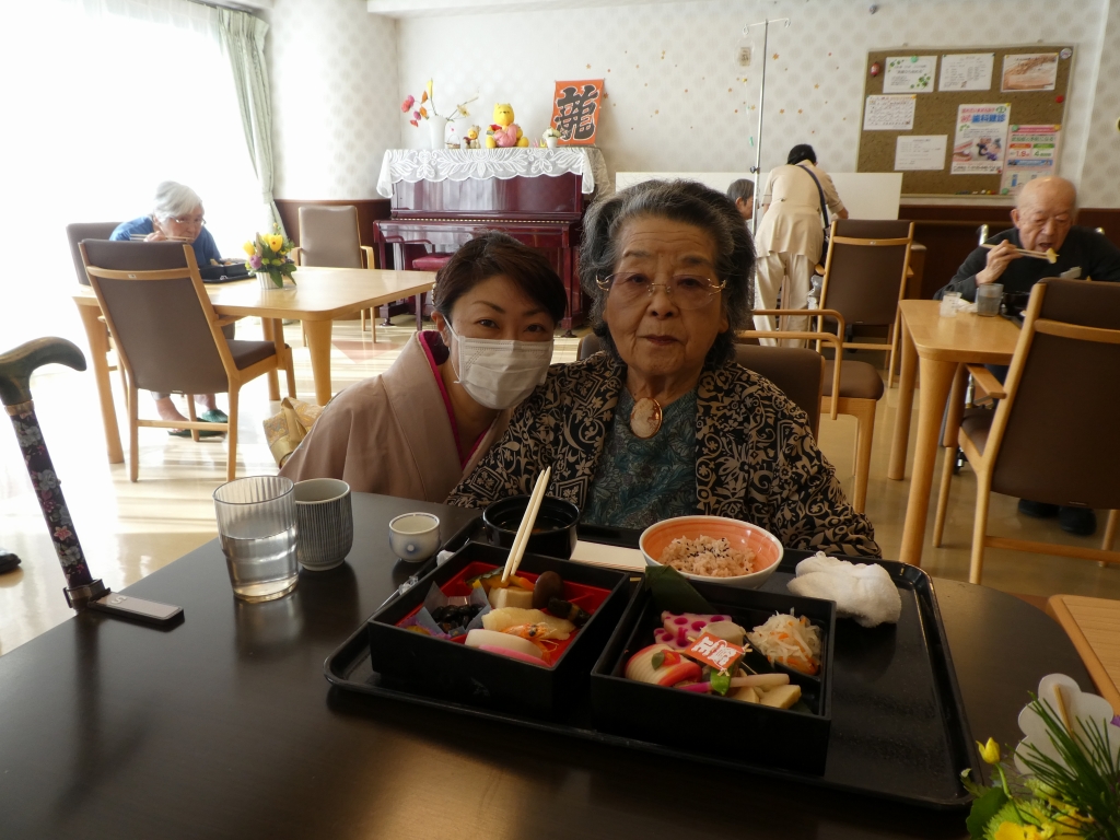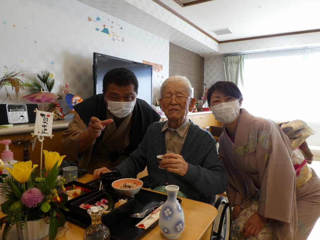 本日は、施設長に乾杯を頂き、昼食におせちを召し上がって頂きました。