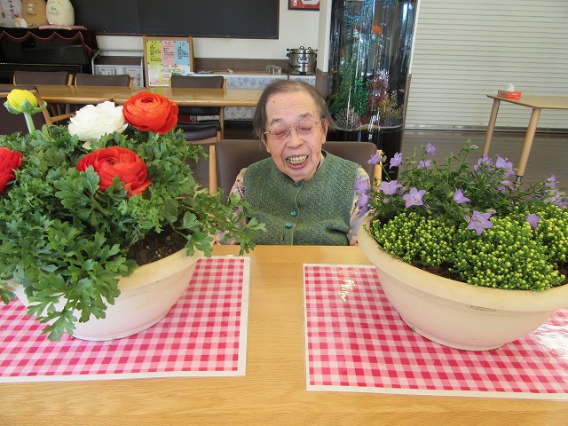 少し冷たい南風の吹くテラスにご入居者をお誘いしました。