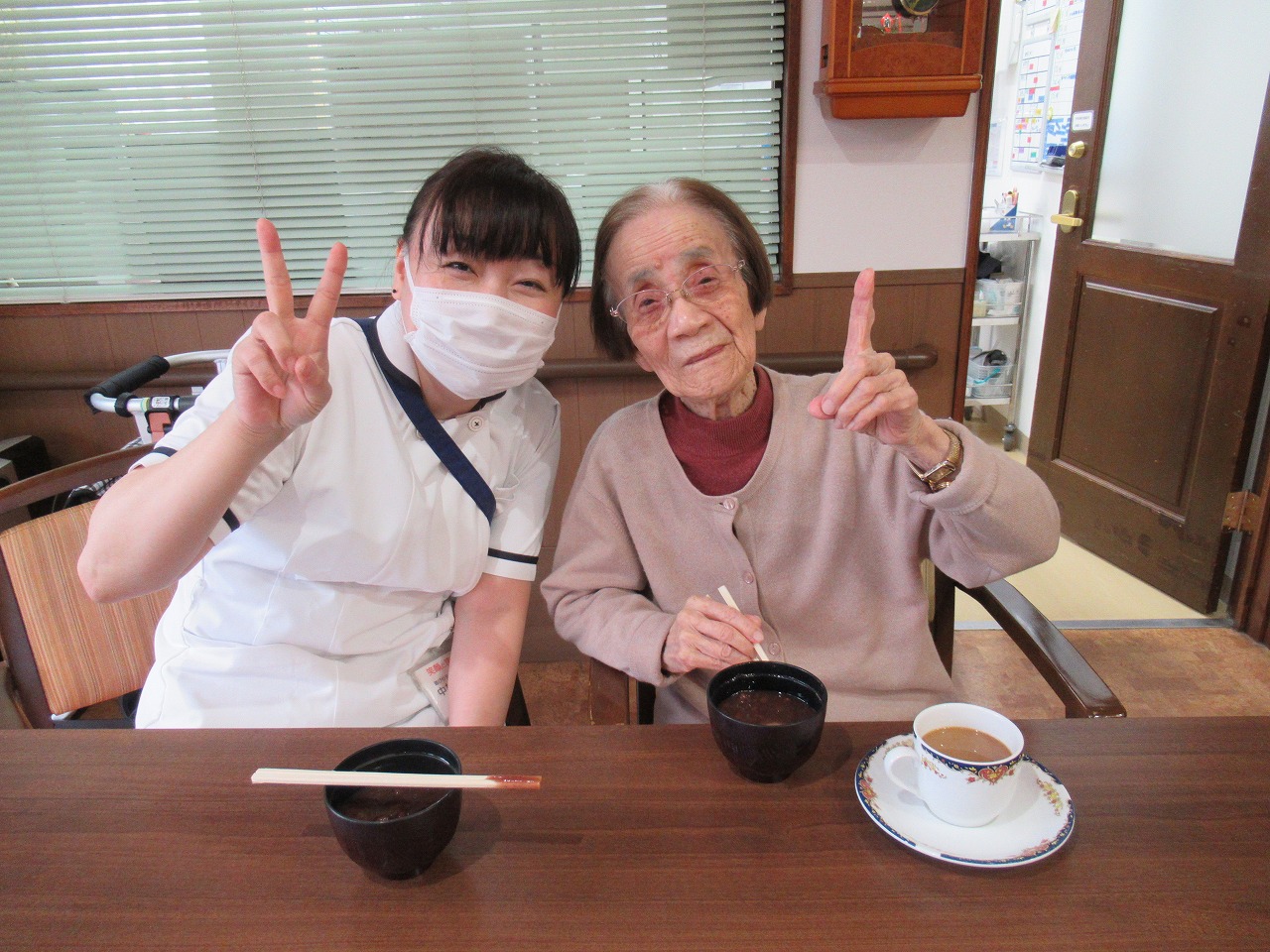 本日は鏡開きをして、おやつの時間におしるこを頂きました★