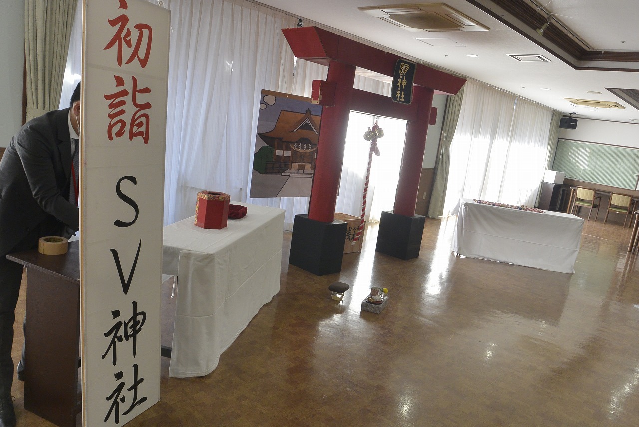 それならば!施設で初詣をできるように!と手作りのSV神社が1階ホールに建立されました。